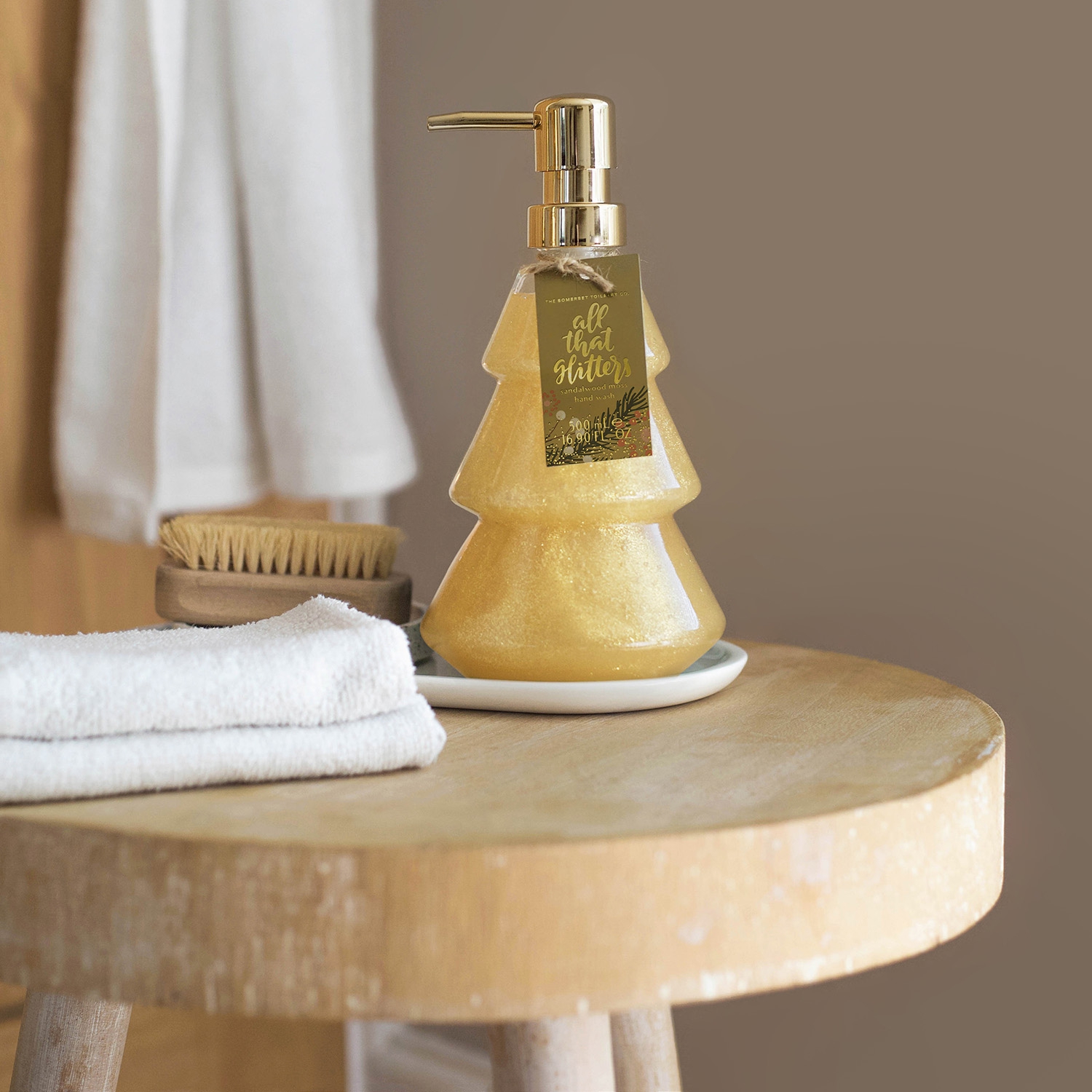 Der Pumpspender kommt als schlichter Tannenbaum daher. So schmückt er jedes Waschbecken stilvoll und dennoch weihnachtlich.