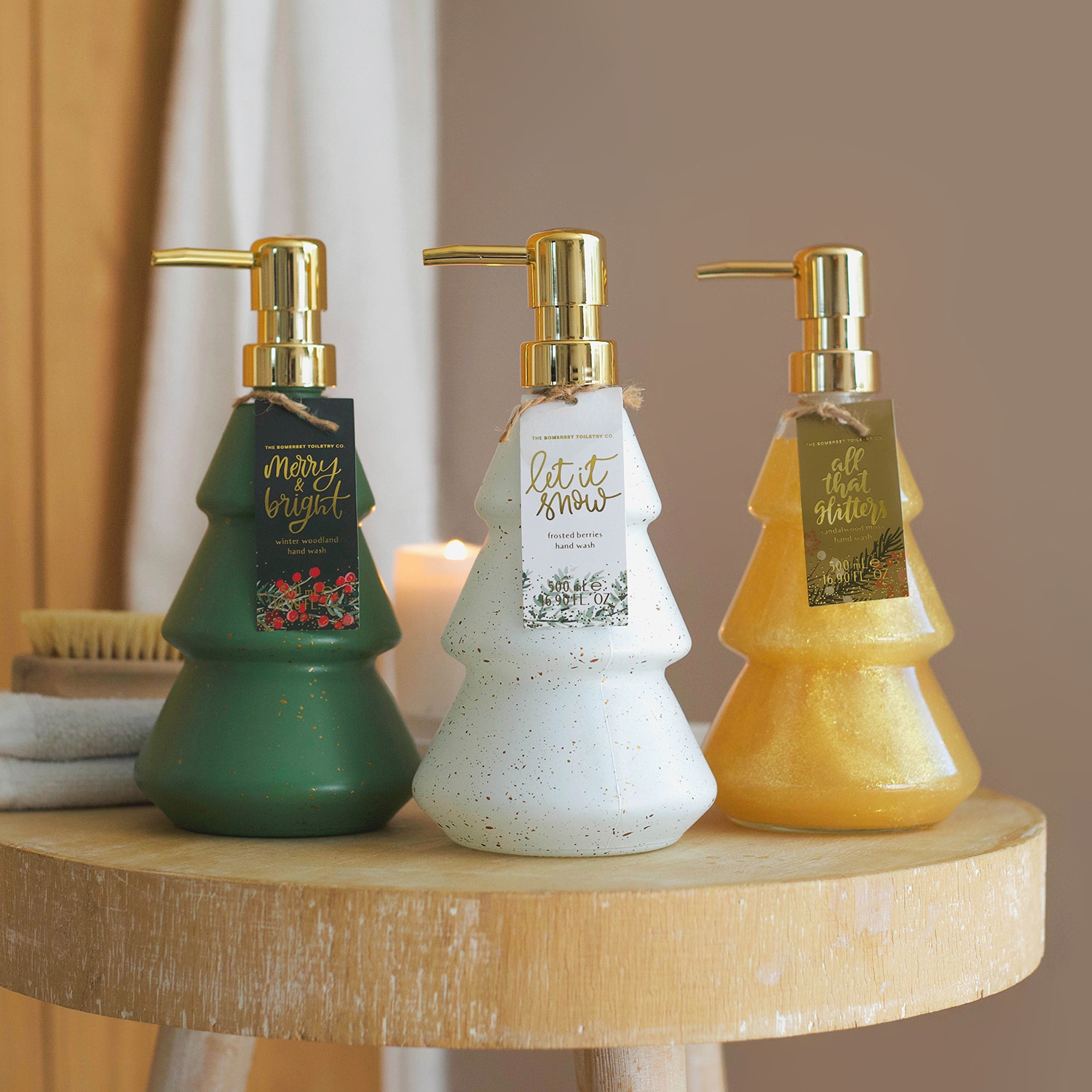 Die schicken Seifenspender der Linie „Merry Bells" läuten die Weihnachtszeit ein. Hier trifft Weihnachts-Glam auf stilvolles Design.