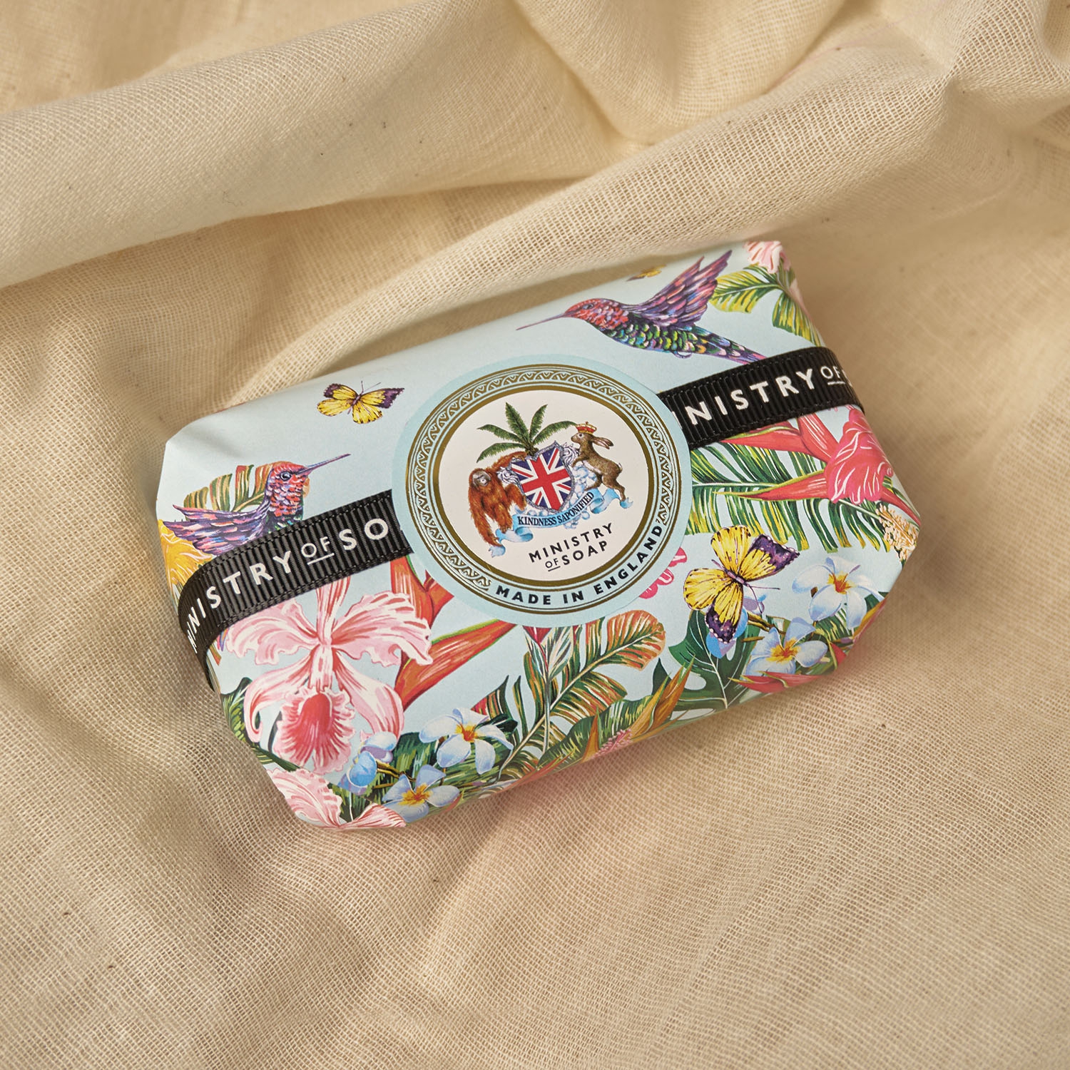 Ministry of Soap produziert die Seifenstücke nur in Großbritannien und fühlt sich bei den Inhaltsstoffen und einer Plastik-freien Verpackung der Umwelt verpflichtet.