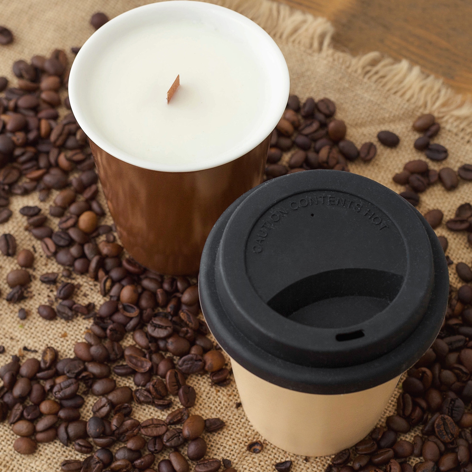 Der Keramikbecher kommt mit einem Deckel aus Silikon, welcher den Becher sicher verschließt. Er kann nach dem Abbrennen der Duftkerze als Kaffeebecher weiterverwendet werden und ist spülmaschinenfest.