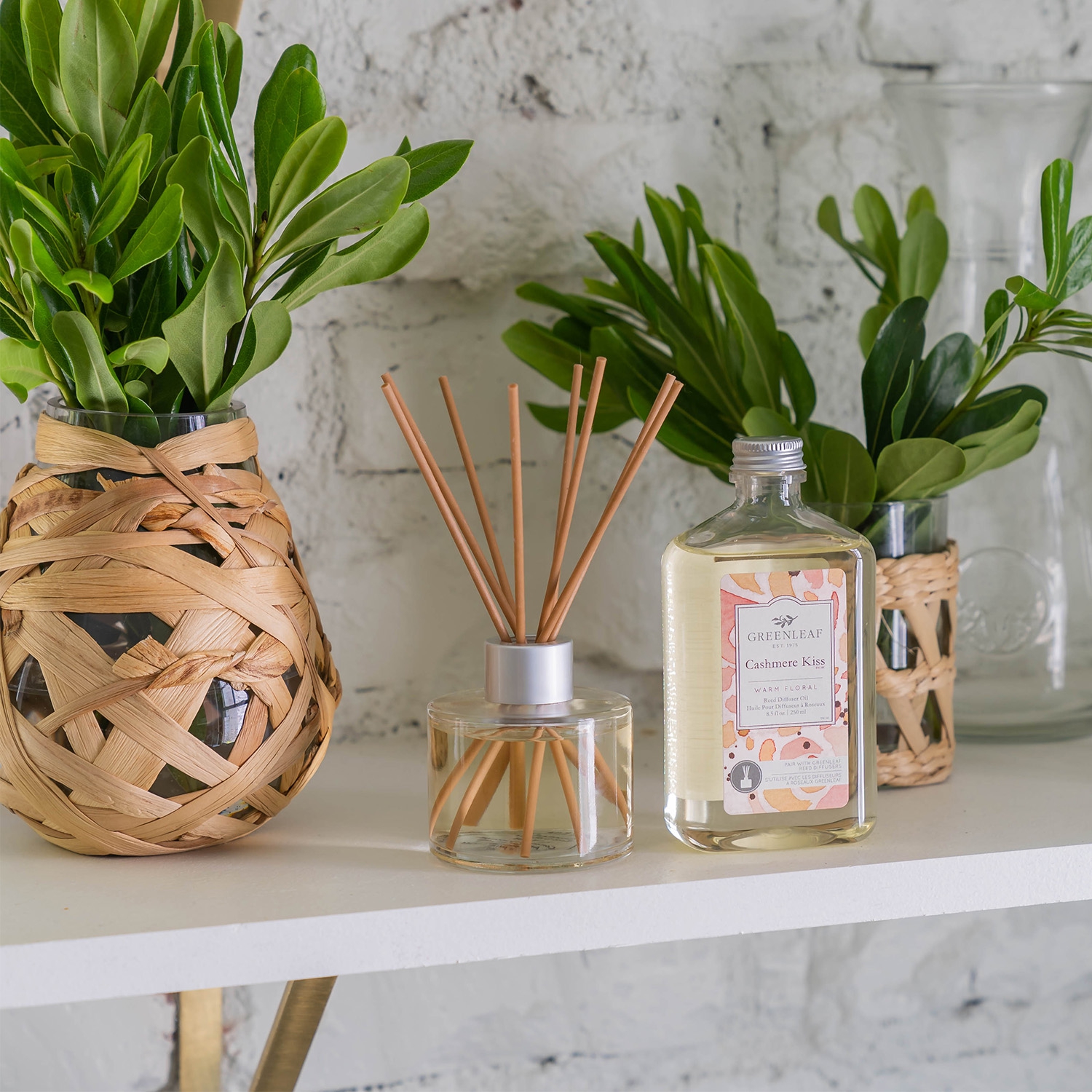 Reed Diffuser Öl ist eine beliebte Variante der Raumbeduftung. Die Reed Öle von Geenleaf in der Nachfüllflasche können im Signature Reed Diffuser als Refill verwendet, aber auch in jeder anderen Glasvase eingesetzt werden. Die Zusammensetzung der Reed Öle sorgt für eine lang anhaltende Beduftung von bis zu neun Monaten bei 250 ml.