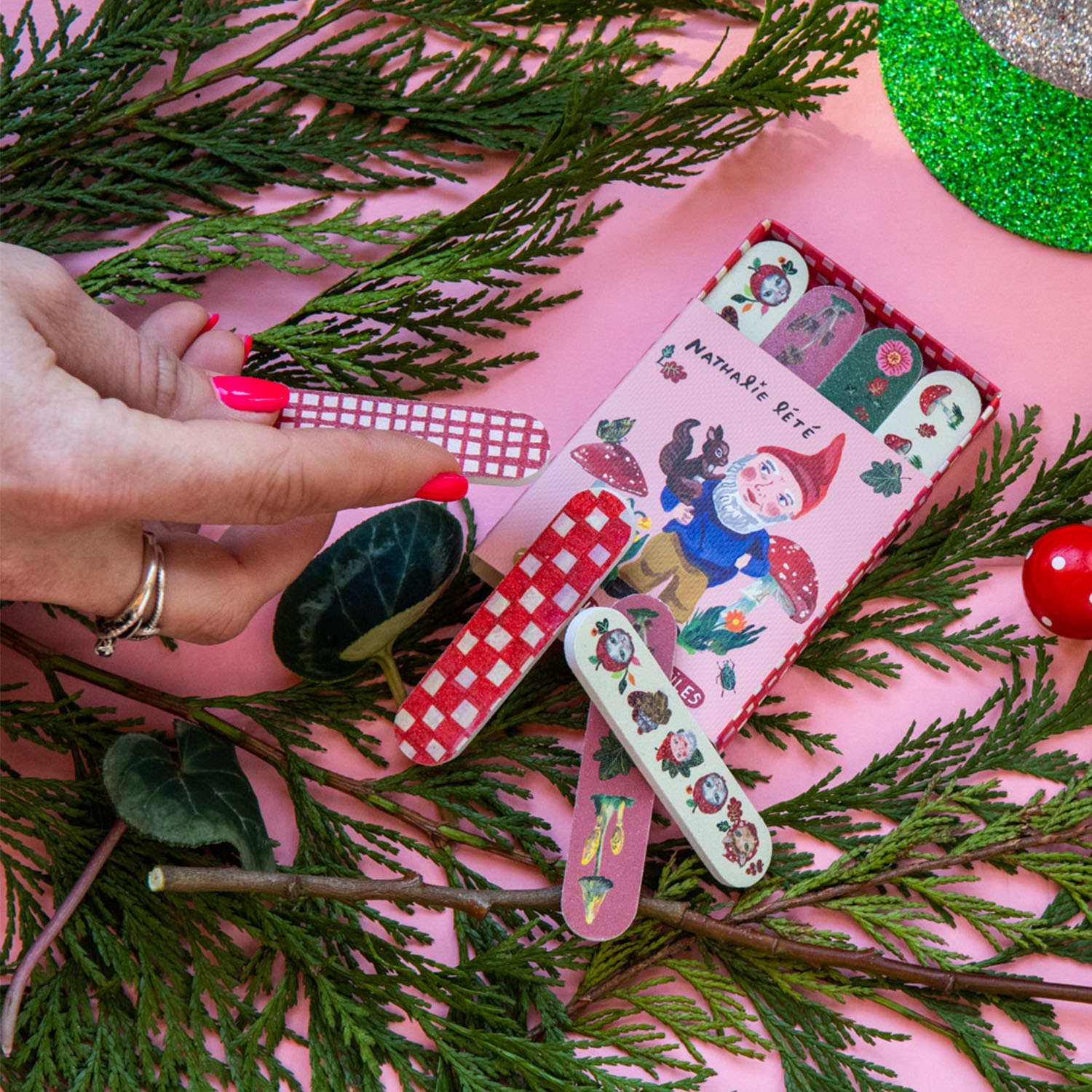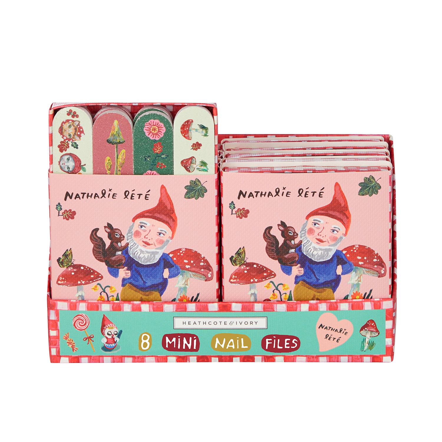 In der kleinen Schuberbox befinden sich insgesamt 8 kleine Nagelfeilen, die für eine schnelle Maniküre unterwegs sorgen. Bedruckt sind sie mit zauberhaften Motiven aus der Welt von Natalie Lete.