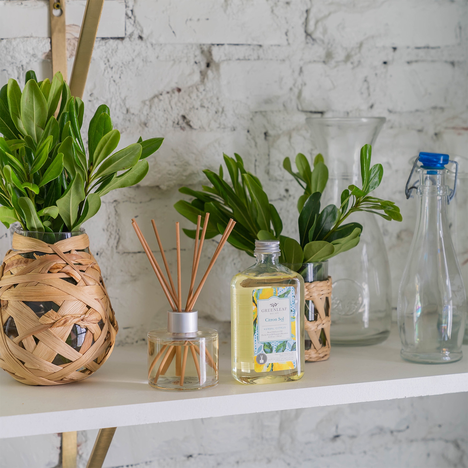 Reed Diffuser Öl ist eine beliebte Variante der Raumbeduftung. Die Reed Öle von Geenleaf in der Nachfüllflasche können im Signature Reed Diffuser als Refill verwendet, aber auch in jeder anderen Glasvase eingesetzt werden. Die Zusammensetzung der Reed Öle sorgt für eine lang anhaltende Beduftung von bis zu neun Monaten bei 250 ml.
