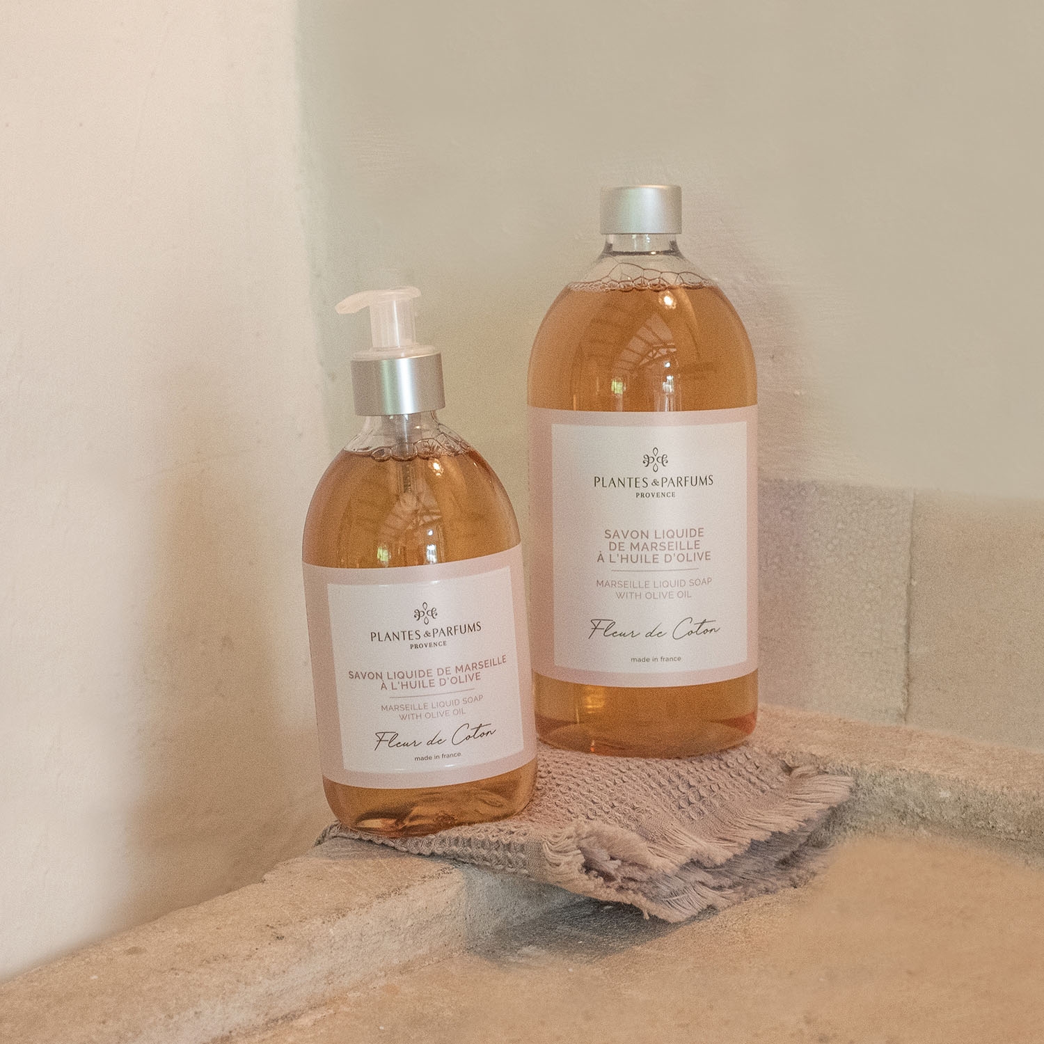 Die hochwertigen Flüssigseifen von Plantes & Parfums werden mit hochwertigen Pflanzenölen in Bio-Qualität hergestellt und vereinen traditionelle Handwerkskunst mit natürlichen Inhaltsstoffen und einem Hauch von Provence. Nach der bewährten Methode von Marseille wird sie sorgfältig im Kessel gekocht - ein Verfahren, das seit Jahrhunderten für seine Qualität und Milde bekannt ist. Die Formel basiert auf pflanzlichen Ölen, darunter wertvolles Olivenöl, das für seine pflegenden und feuchtigkeitsspendenden Eigenschaften geschätzt wird.