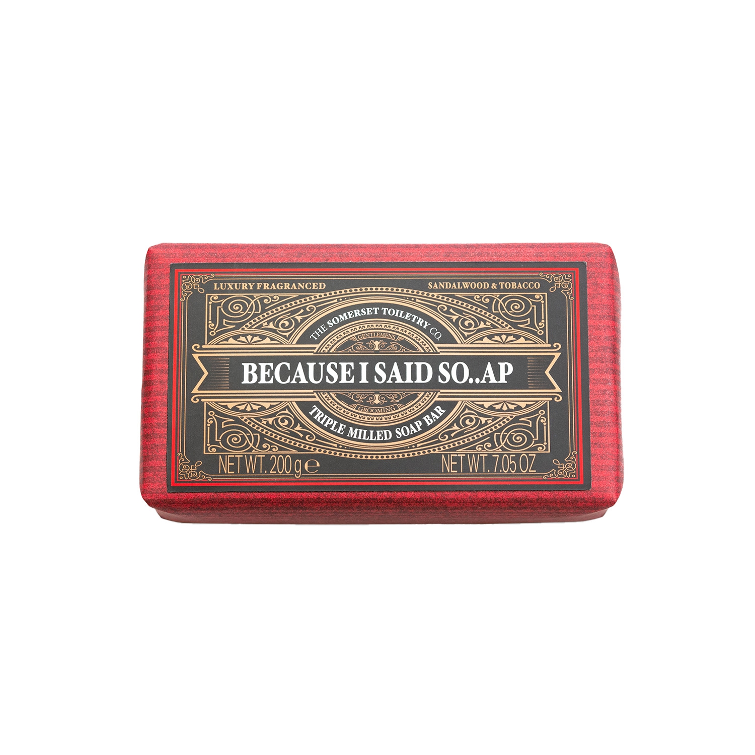 Die „Because I said so…ap bar" Seife kommt mit den Duftnoten von Sandelwood & Tobacco.