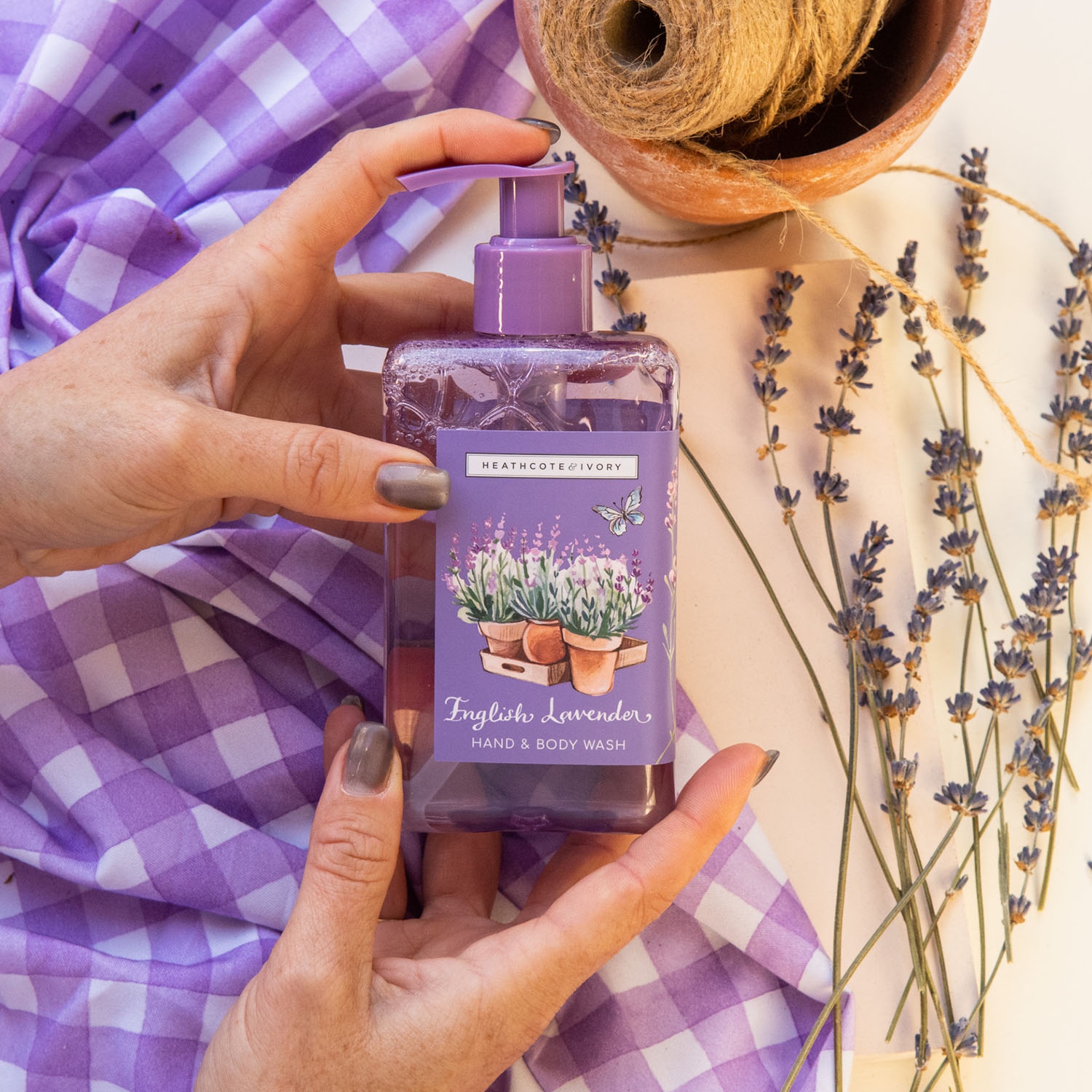 Das English Lavender Hand & Body Wash kommt in einer praktischen Pumpspenderflasche mit 250 ml und findet seinen Platz fürs Händewaschen am Waschbecken oder als Körperseife in der Dusche. Die sanfte Formulierung reinigt und pflegt die Haut in einem Schritt und sorgt für ein sauberes, erfrischtes und weiches Hautgefühl.