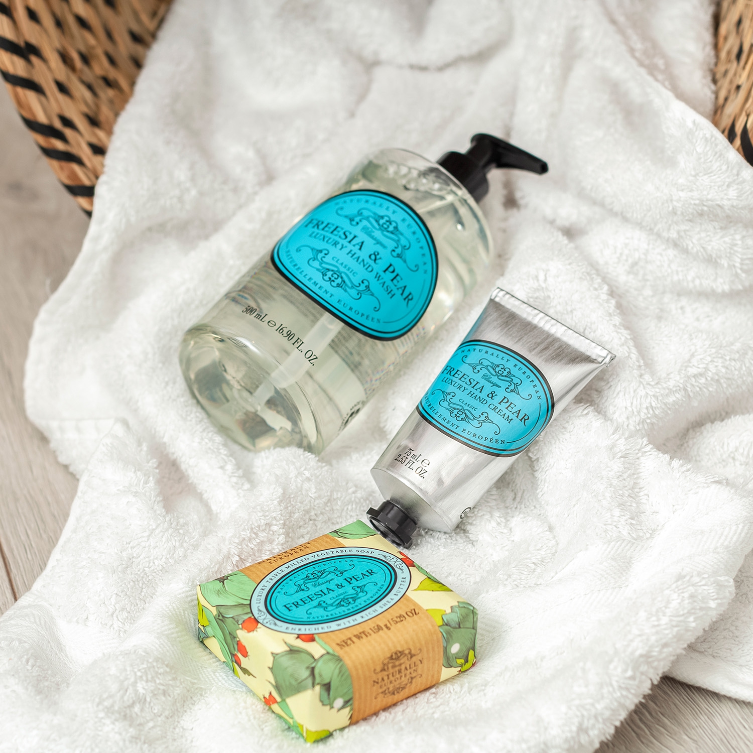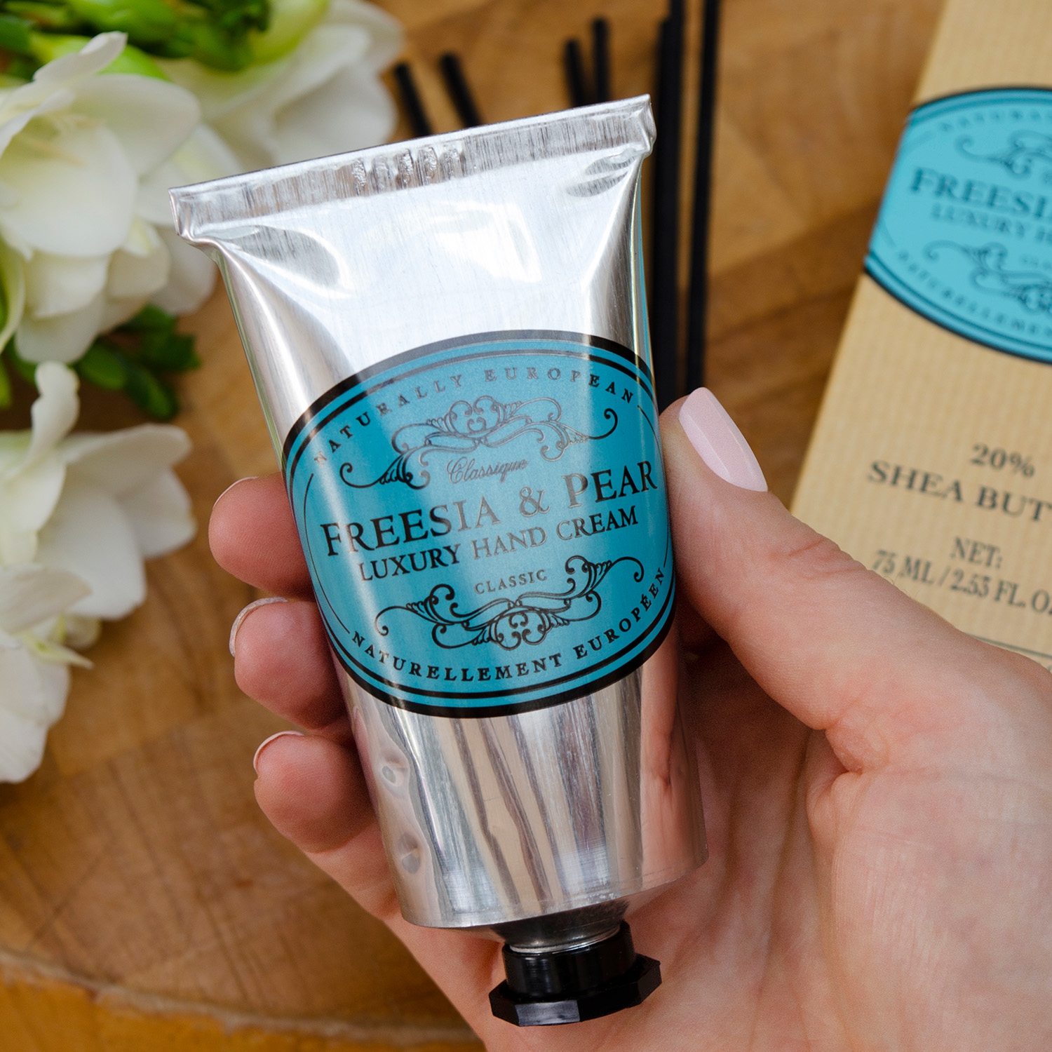 Das süße und saftige Aroma sonnengereifter Birnen geht eine anregende Verbindung mit der zarten Freesie ein. Dadurch entsteht eine floral-frische Duft-Kombi, deren zarter Frische man sich nicht entziehen kann.