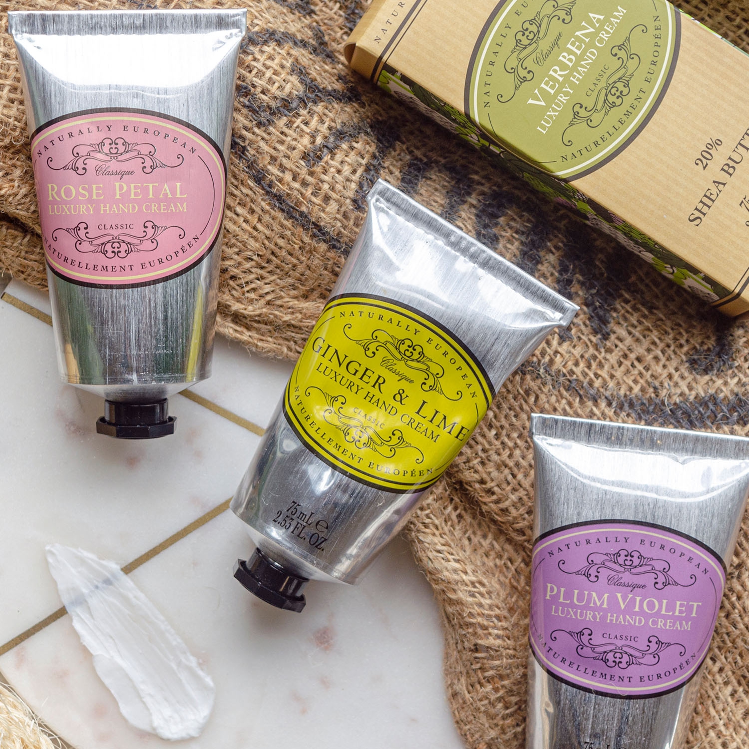 Die Handcremes von Naturally European sind angereichert mit 20% Sheabutter. Die reichhaltige Textur schmilzt sanft auf der Haut und sorgt für glatte und gepflegte Haut.