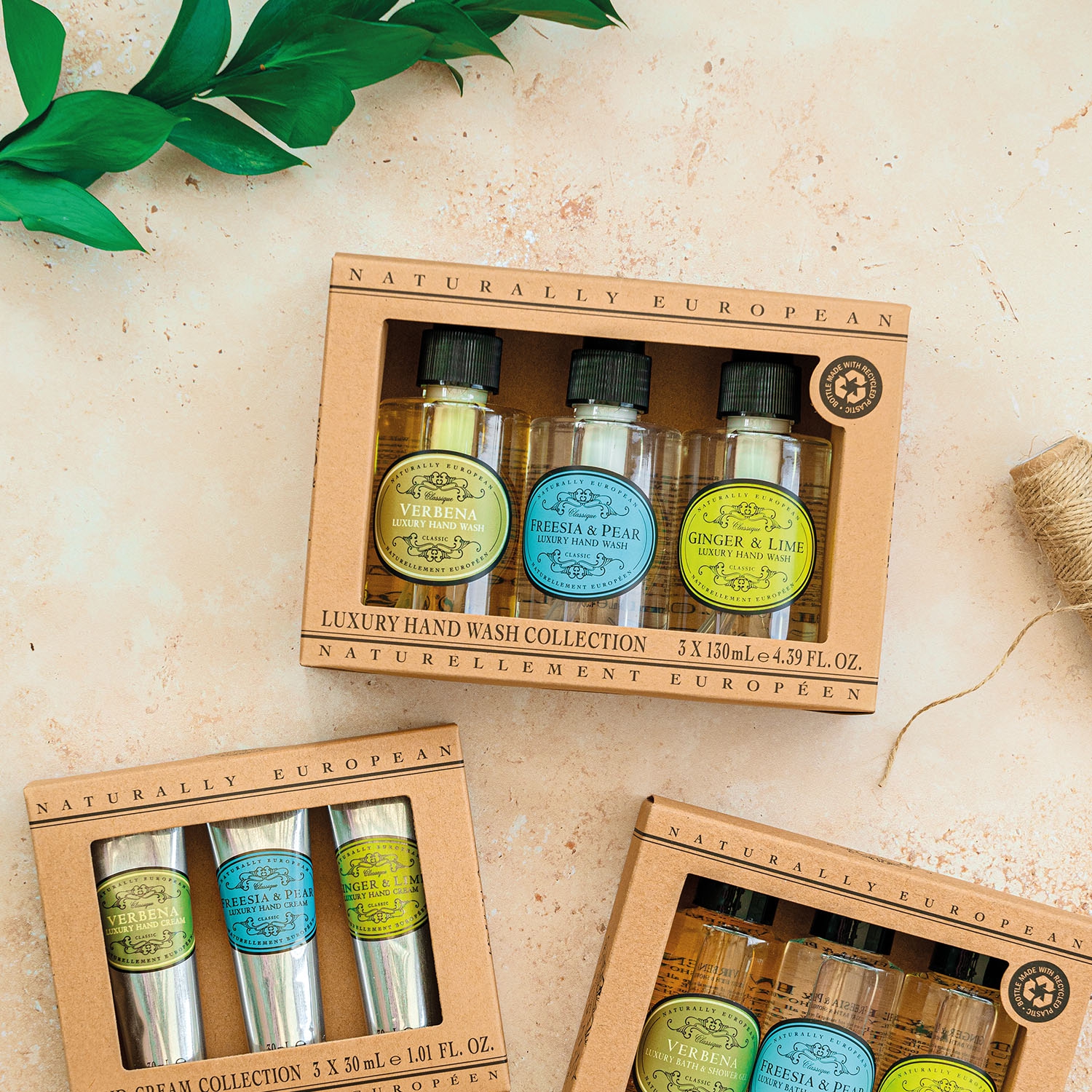 Die beliebten Flüssigseifen von Naturally European sind auch als 3er-Set im Mini Format erhältlich.