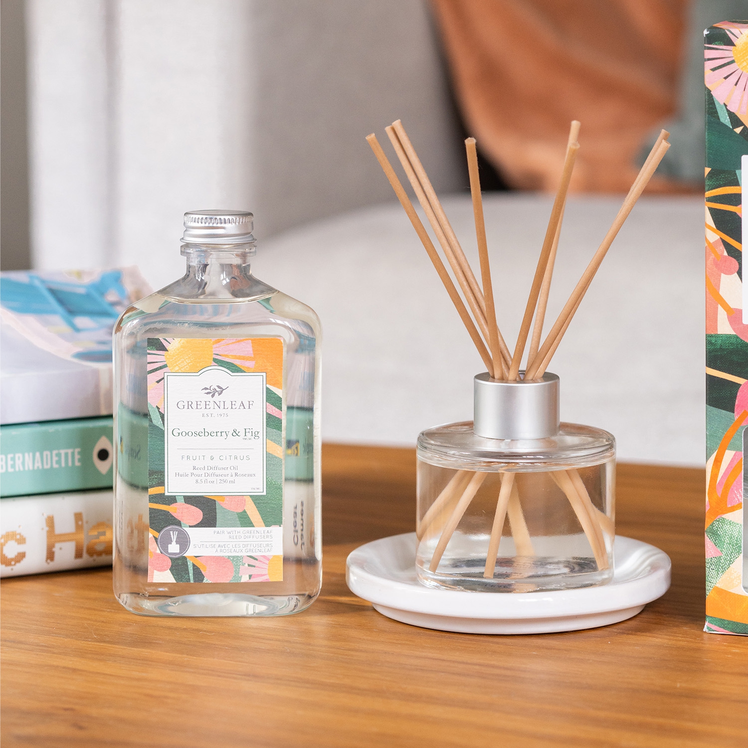 Reed Diffuser Öl ist eine beliebte Variante der Raumbeduftung. Die Reed Öle von Geenleaf in der Nachfüllflasche können im Signature Reed Diffuser als Refill verwendet, aber auch in jeder anderen Glasvase eingesetzt werden. Die Zusammensetzung der Reed Öle sorgt für eine lang anhaltende Beduftung von bis zu neun Monaten bei 250 ml.