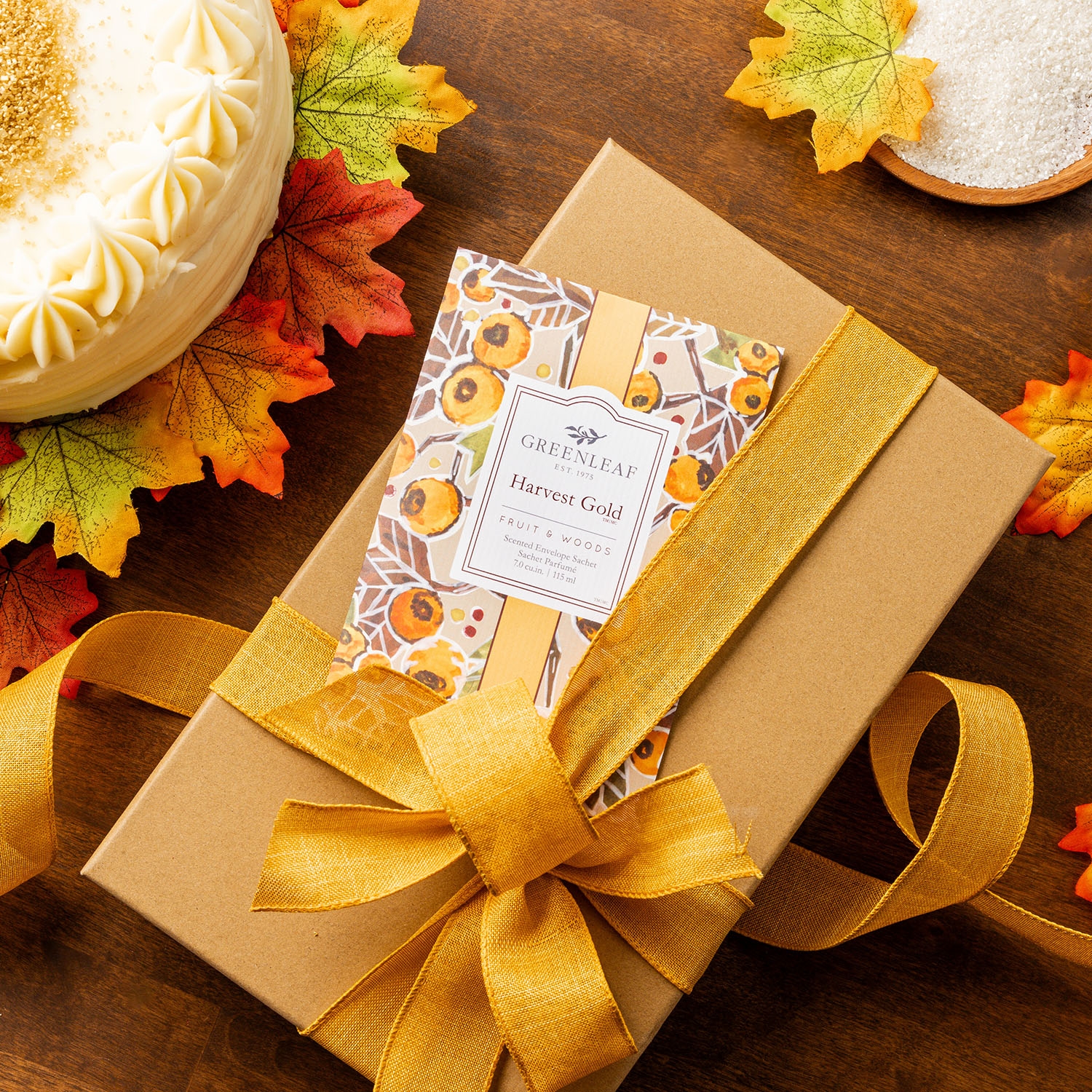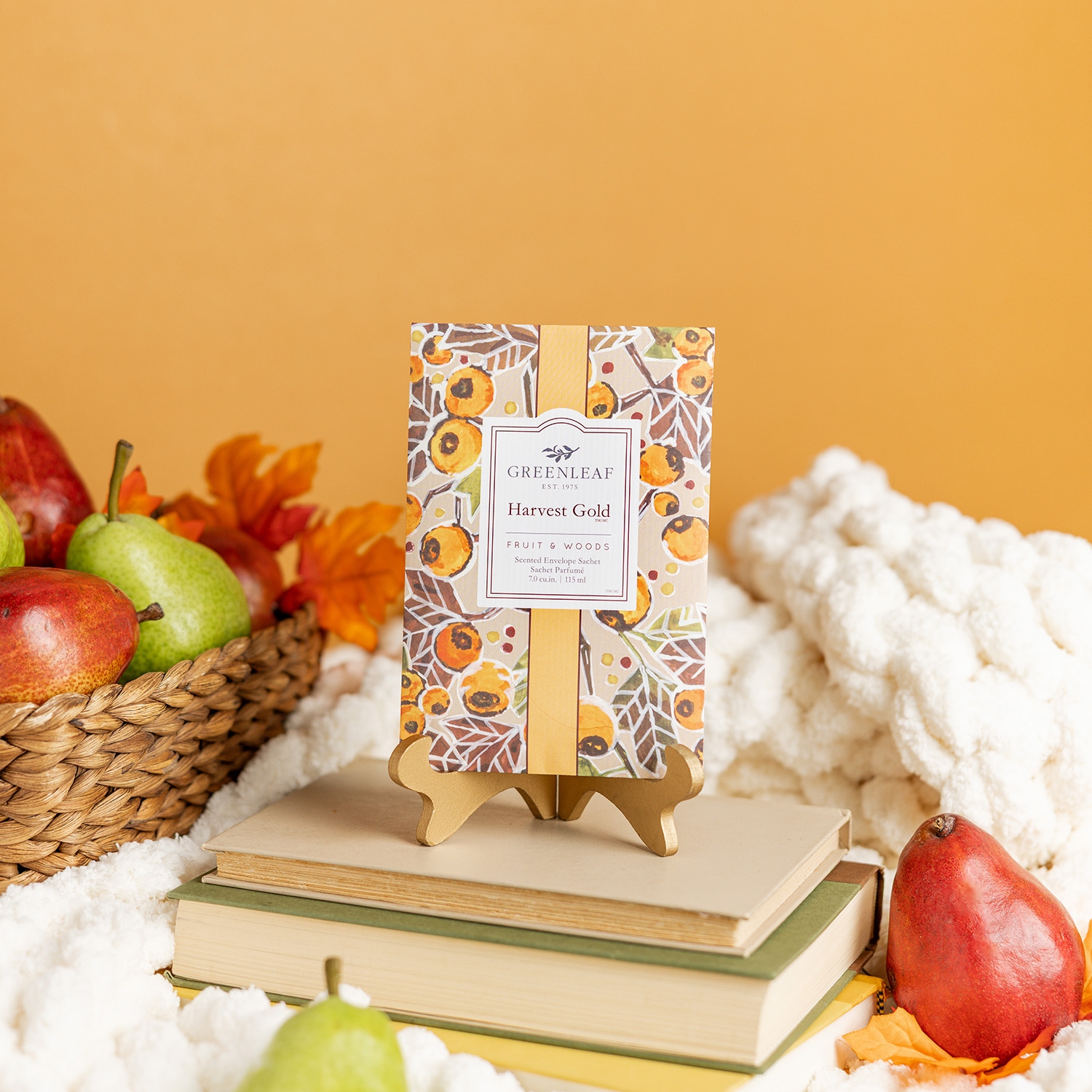 Harvest Gold ist eine Hommage an die frühen Jahren von Greenleaf. Der goldene Duft passt in die bunte, würzig duftende Herbstzeit mit ihrer Farbenpracht und den intensiven Düften, zu Kürbissen, Gewürzplätzchen und Punsch.