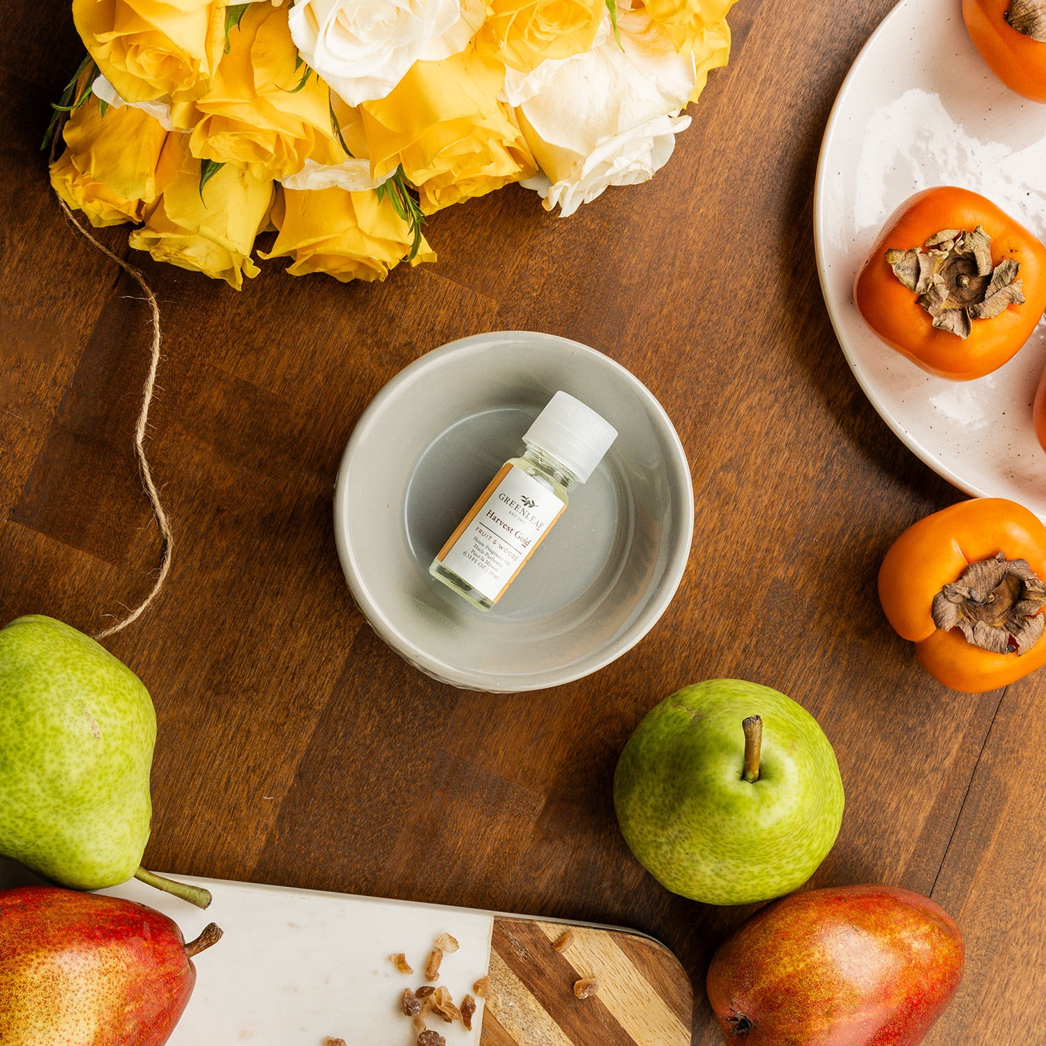 Harvest Gold ist eine Hommage an die frühen Jahren von Greenleaf. Der goldene Duft passt in die bunte, würzig duftende Herbstzeit mit ihrer Farbenpracht und den intensiven Düften, zu Kürbissen, Gewürzplätzchen und Punsch.