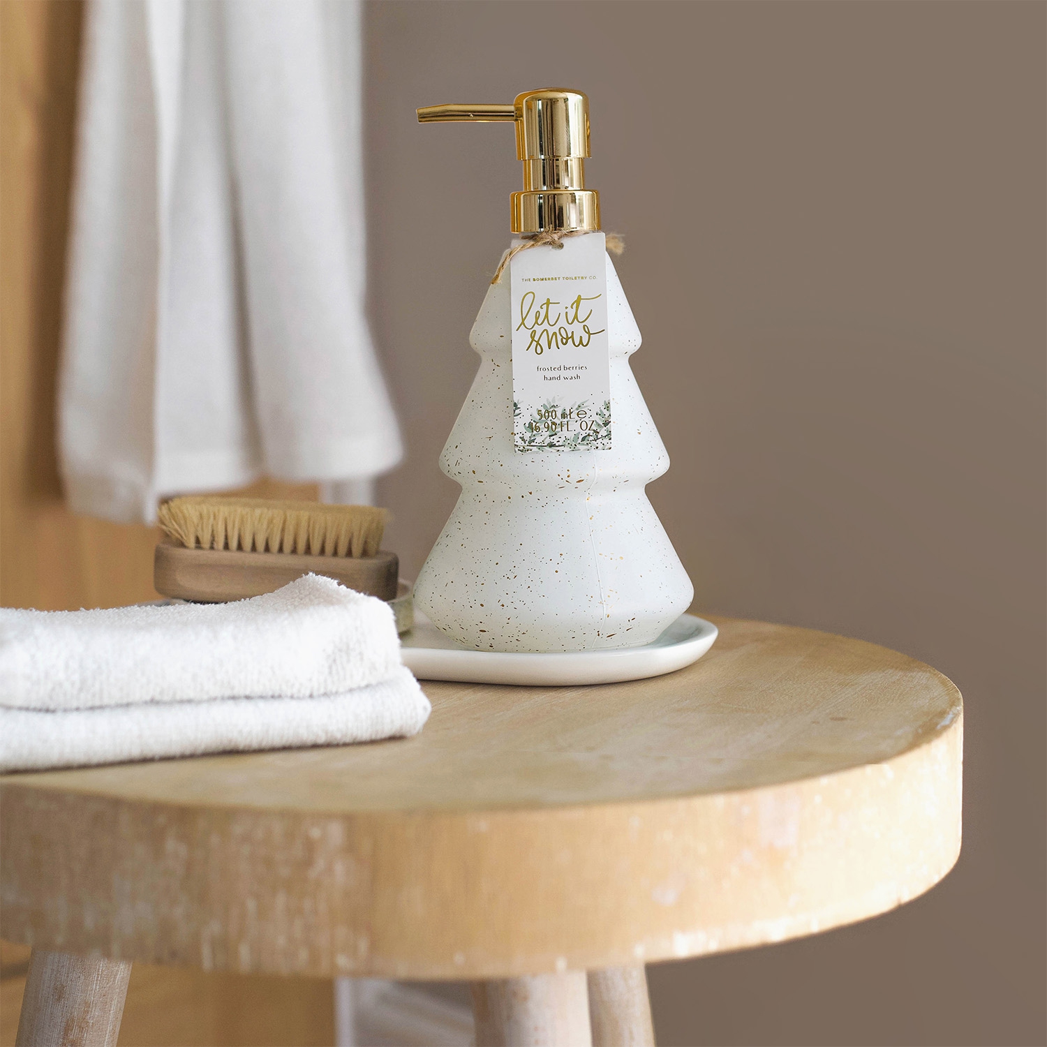 Der Pumpspender kommt als schlichter Tannenbaum daher. So schmückt er jedes Waschbecken stilvoll und dennoch weihnachtlich.