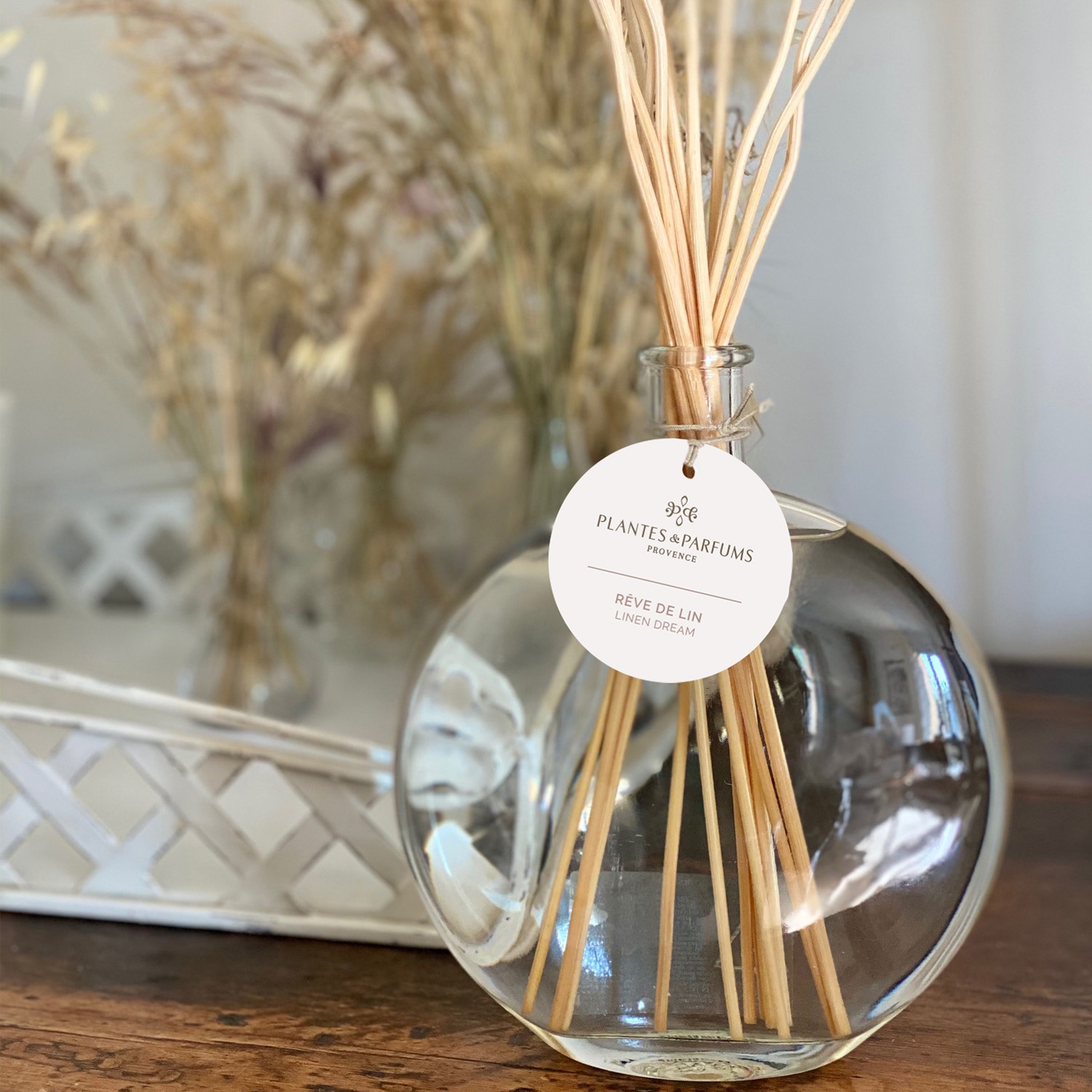 Der Reed Diffuser Linen Dream/Rêve de Lin entführt in einen schwerelosen Moment - wie ein zarter Sommerhauch, der sanft über blühende Felder streift.