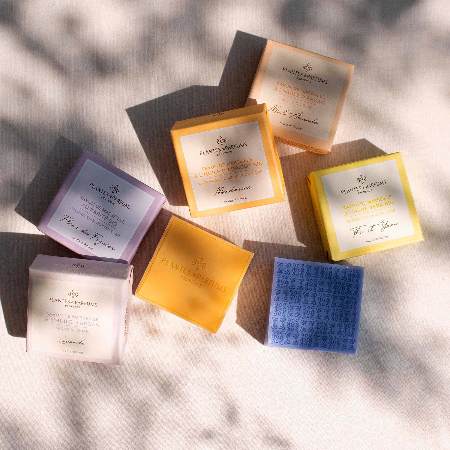 Die duftenden Seifen von Plantes & Parfums werden mit hochwertigen Pflanzenölen in Bio-Qualität in der Provence hergestellt. Auch Shea-Butter, Bienenwachs und Aloe Vera finden Verwendung.