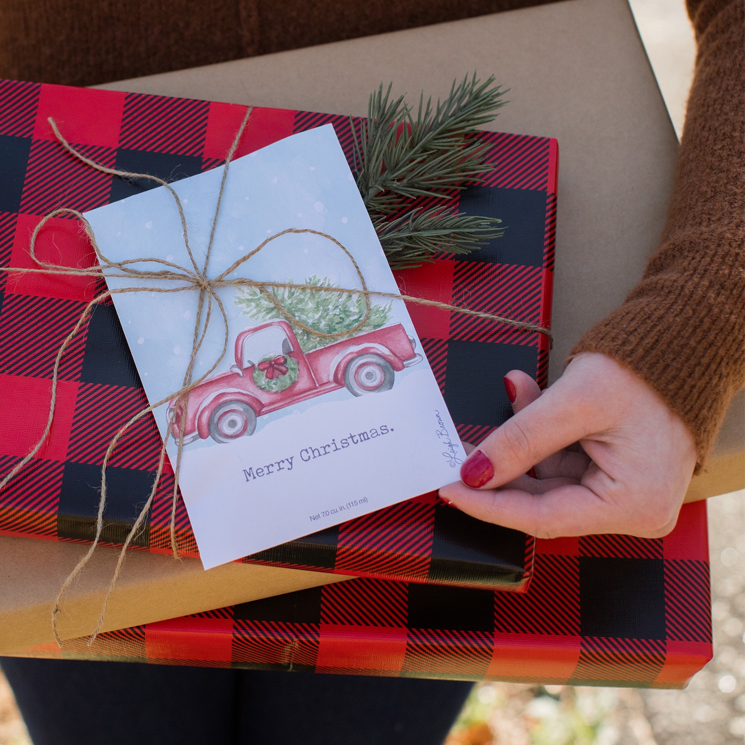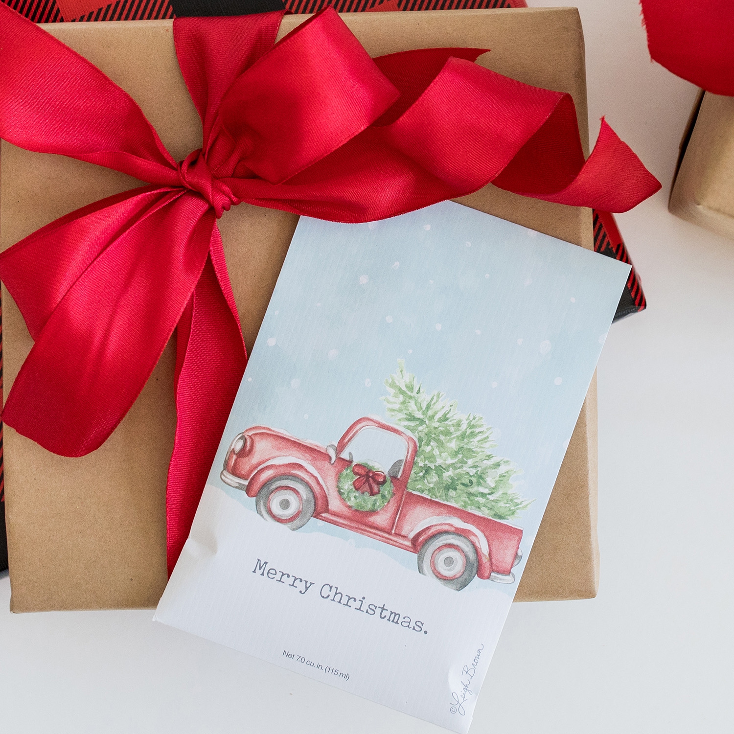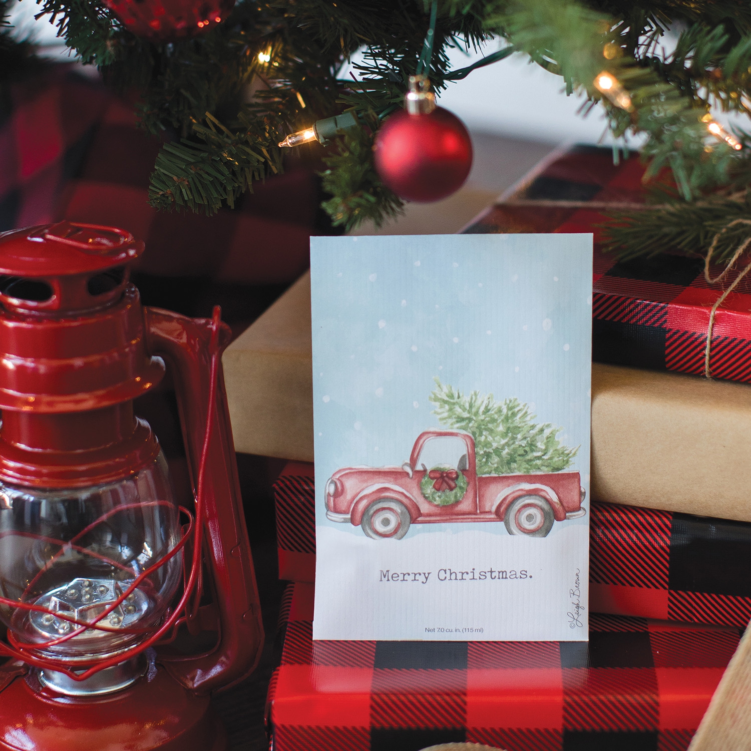 Der kleine, rote Pickup bringt den frisch geschlagenen, würzig und holzig duftenden Weihnachtsbaum ins festlich geschmückte Zuhause. Ein heimeliger Duft für das besondere Weihnachtsgefühl.