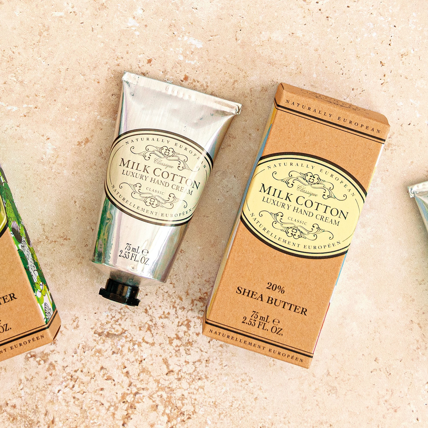 Die Handcremes von Naturally European sind angereichert mit 20% Sheabutter. Die reichhaltige Textur schmilzt sanft auf der Haut und sorgt für glatte und gepflegte Haut.