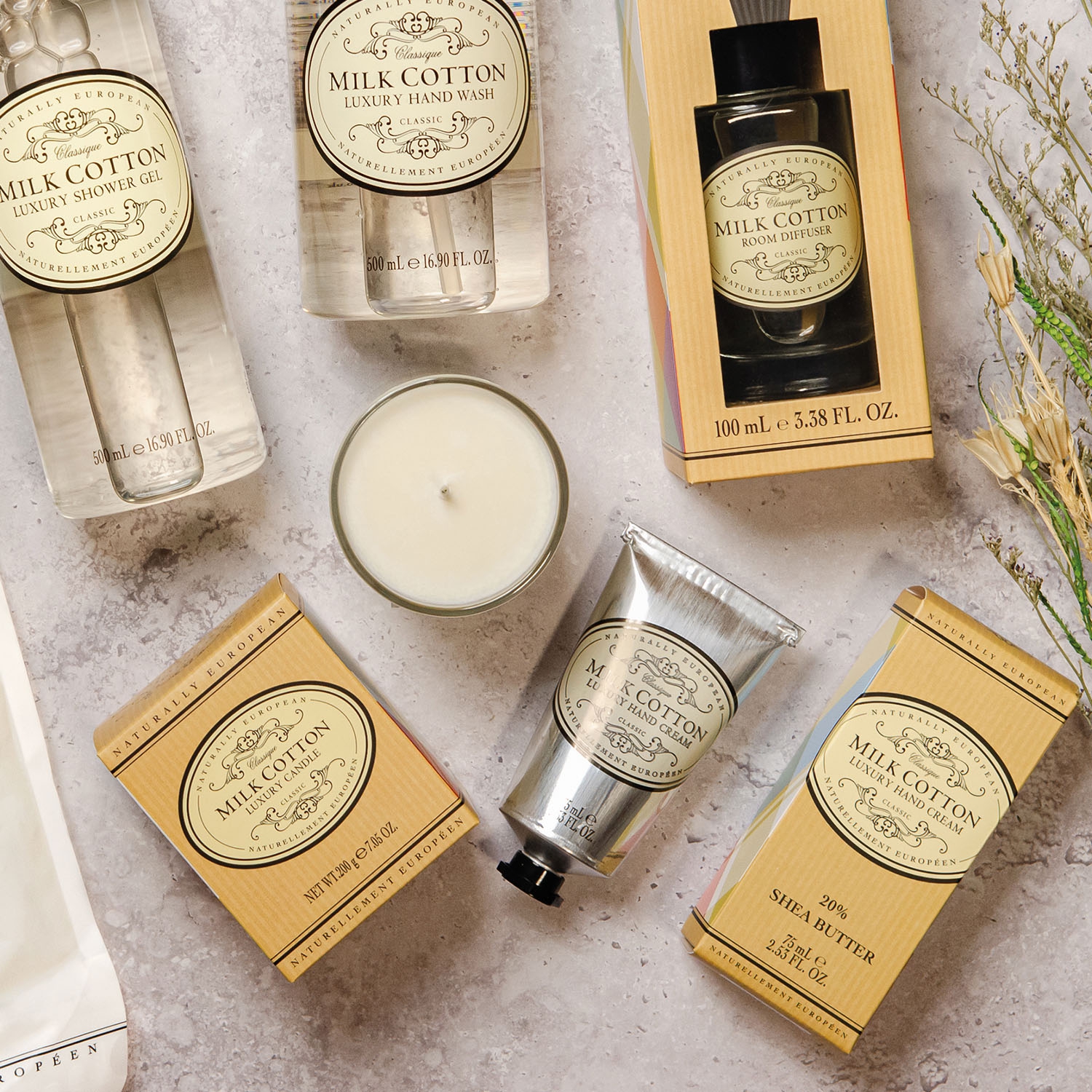 Milch, Zedernholz und Patchouli werden kombiniert, um einen Duft mit wärmenden Noten zu kreieren. Ein beruhigender Duft, der die Sinne verwöhnt und ein weiche, leicht duftende Haut hinterlässt.