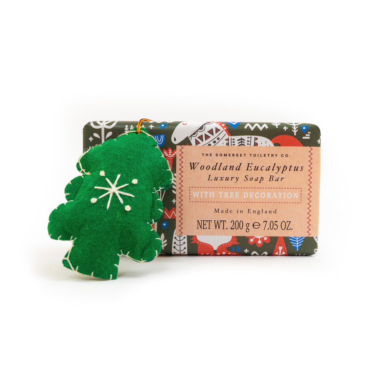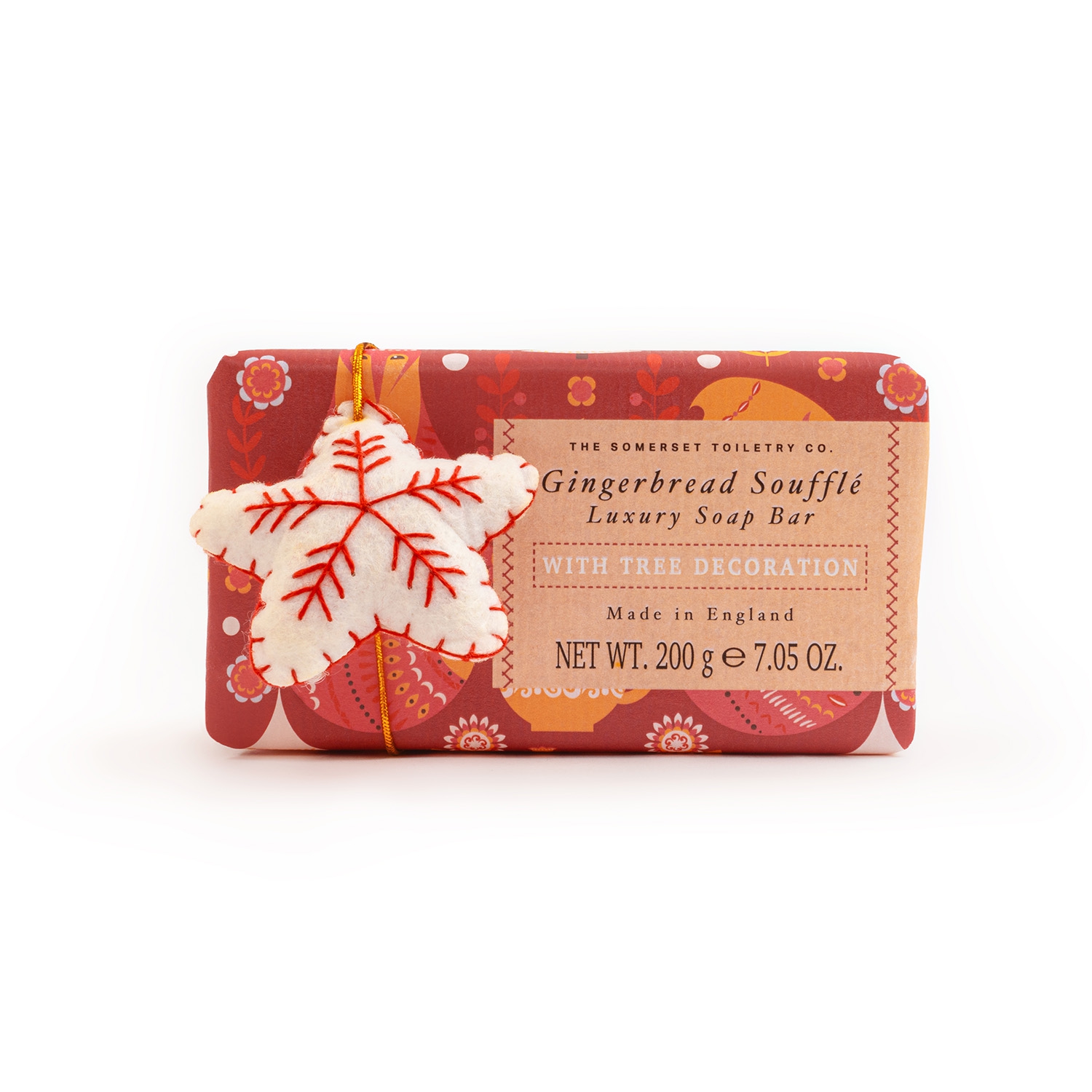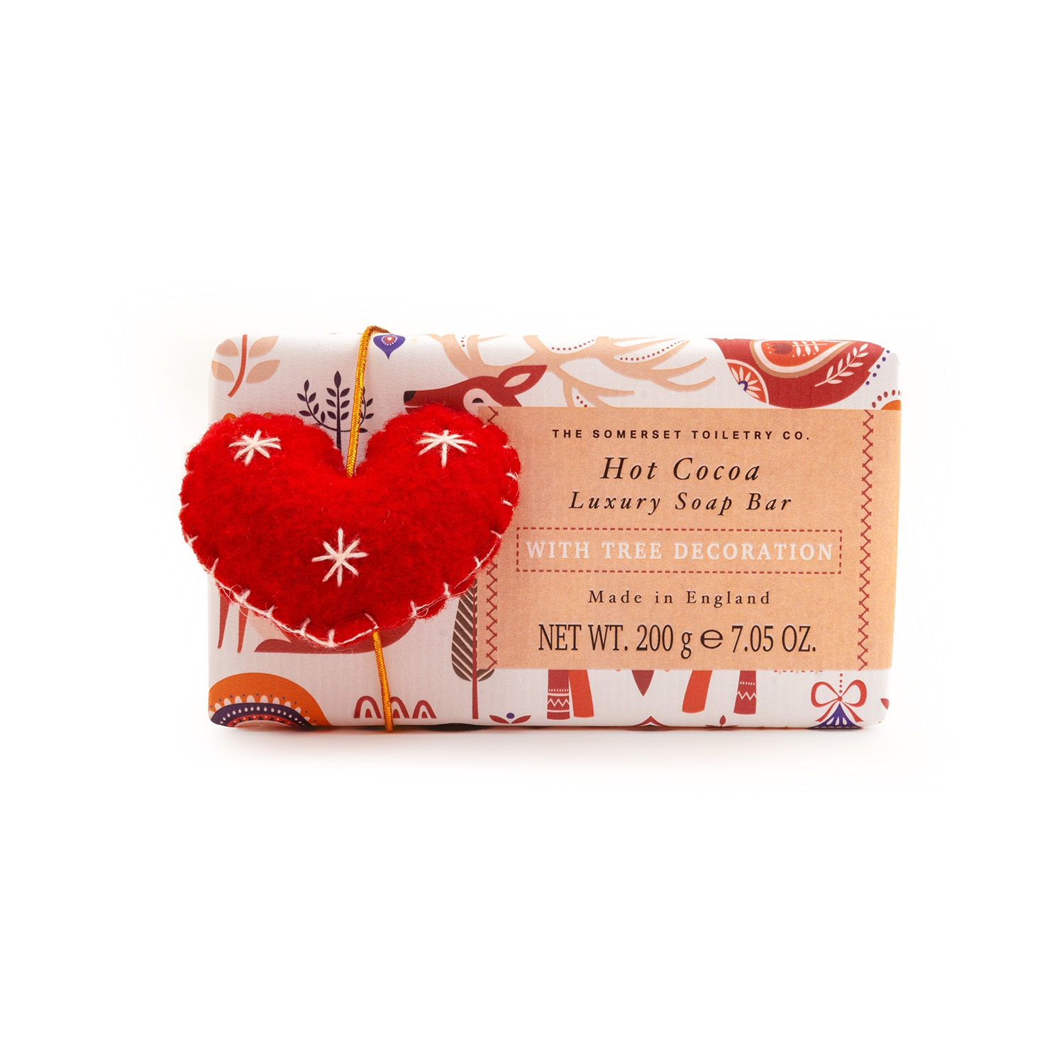 Die „Gingerbread Soufflé" Seife kommt mit einem kleinen Stern-Anhänger, „Hot Chocolate" mit einem Herzen und „Eucalyptus" mit einem Tannenbaum.