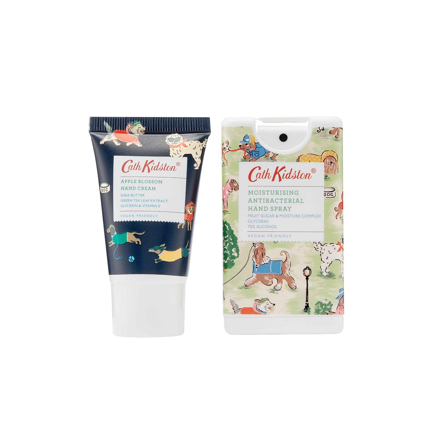 Ein hübsches Set für Hundeliebhaber! Die kleine Kosmetiktasche enthält eine 30 ml Handcreme und ein antibakterielles Handspray. Die Handcreme pflegt mit nährender Sheabutter, Vitamin E und grünem Tee. Das Handspray kombiniert 70%igen Alkohol mit einer hautfreundlichen Synergie aus Glycerin, Aminosäuren und Fruchtzucker, um die natürliche Feuchtigkeitsversorgung der Haut zu unterstützen.