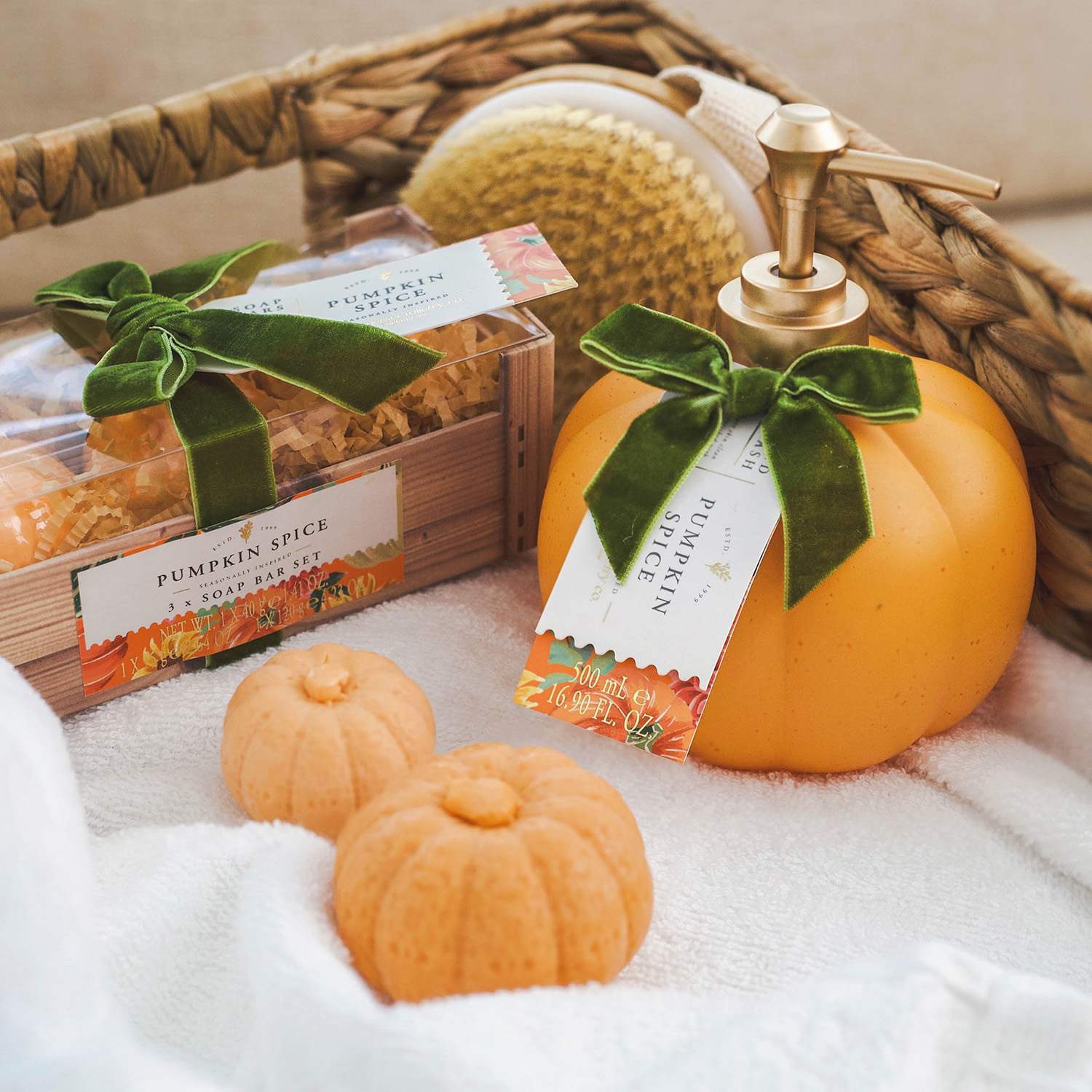 Der orangefarbene Kürbis spendet zart schäumende Flüssigseife, die nach herbstlichem „Pumpkin Spice" duftet. Ein Duft so warm und würzig wie ein leckeres Stück Kürbiskuchen.