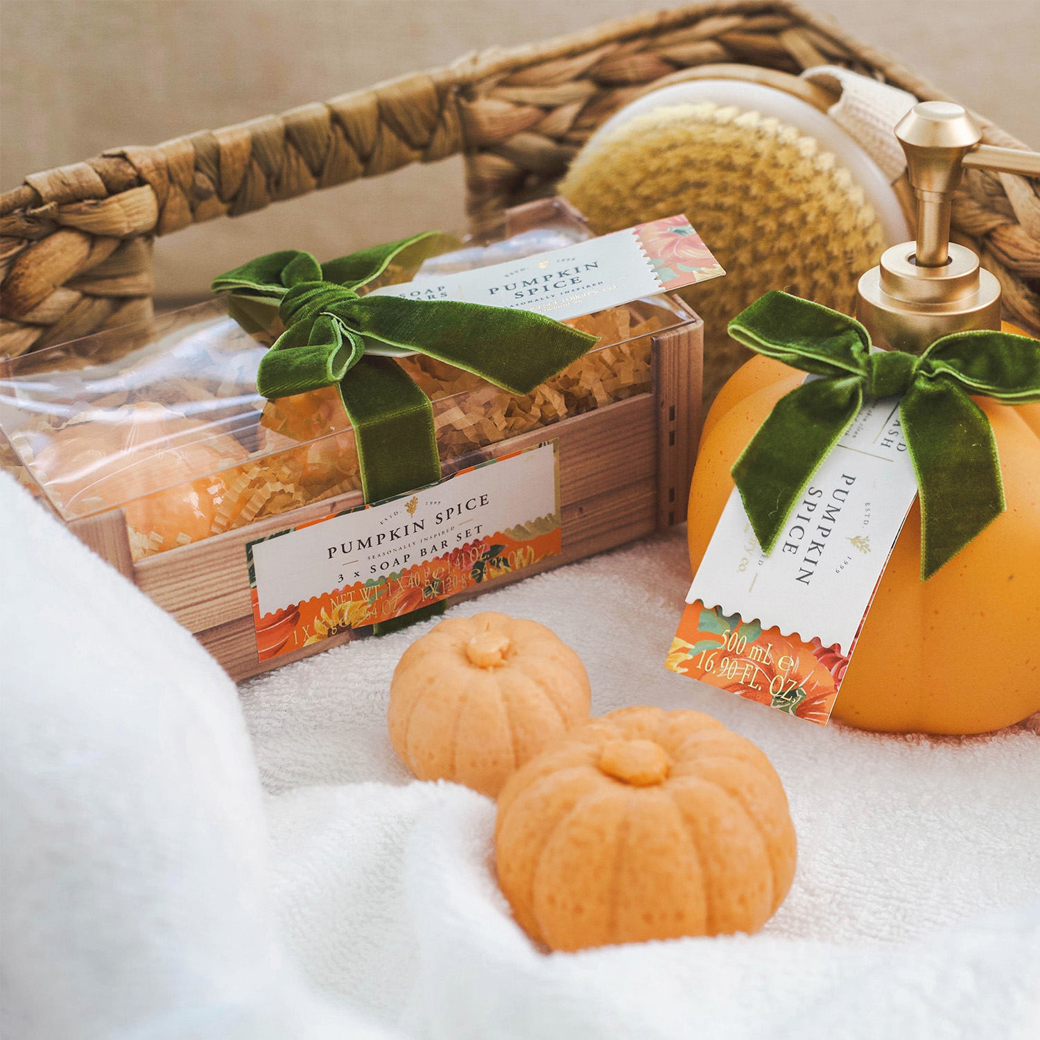 Die Kürbis-Seifen haben jeweils ein Gewicht von 40 g, 75 g und 120 g.