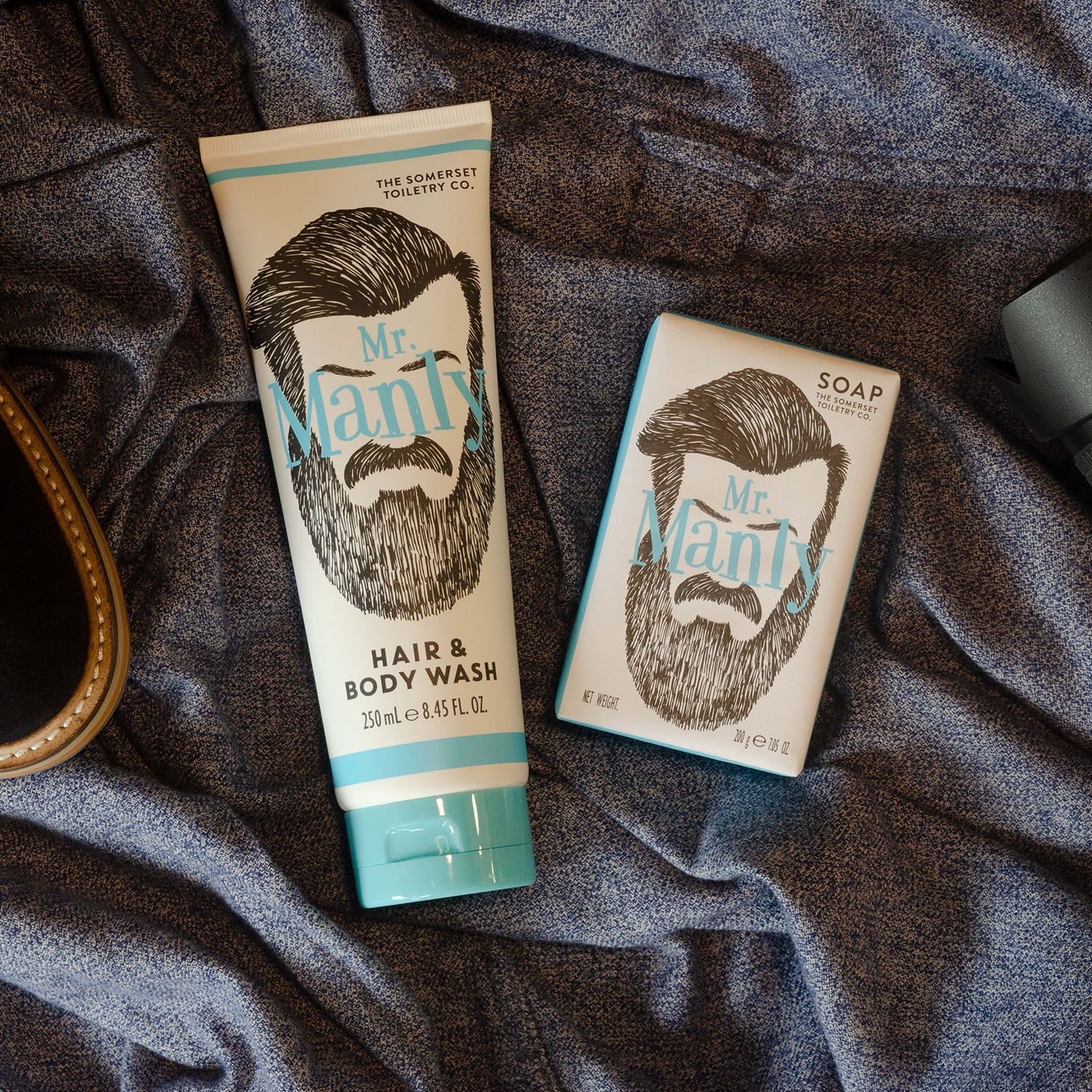 Das Duschgel von Mr. Manly reinigt mit seinem milden Schaum Körper und Haare. Die Tube mit Schnappdeckel enthält 250 ml.