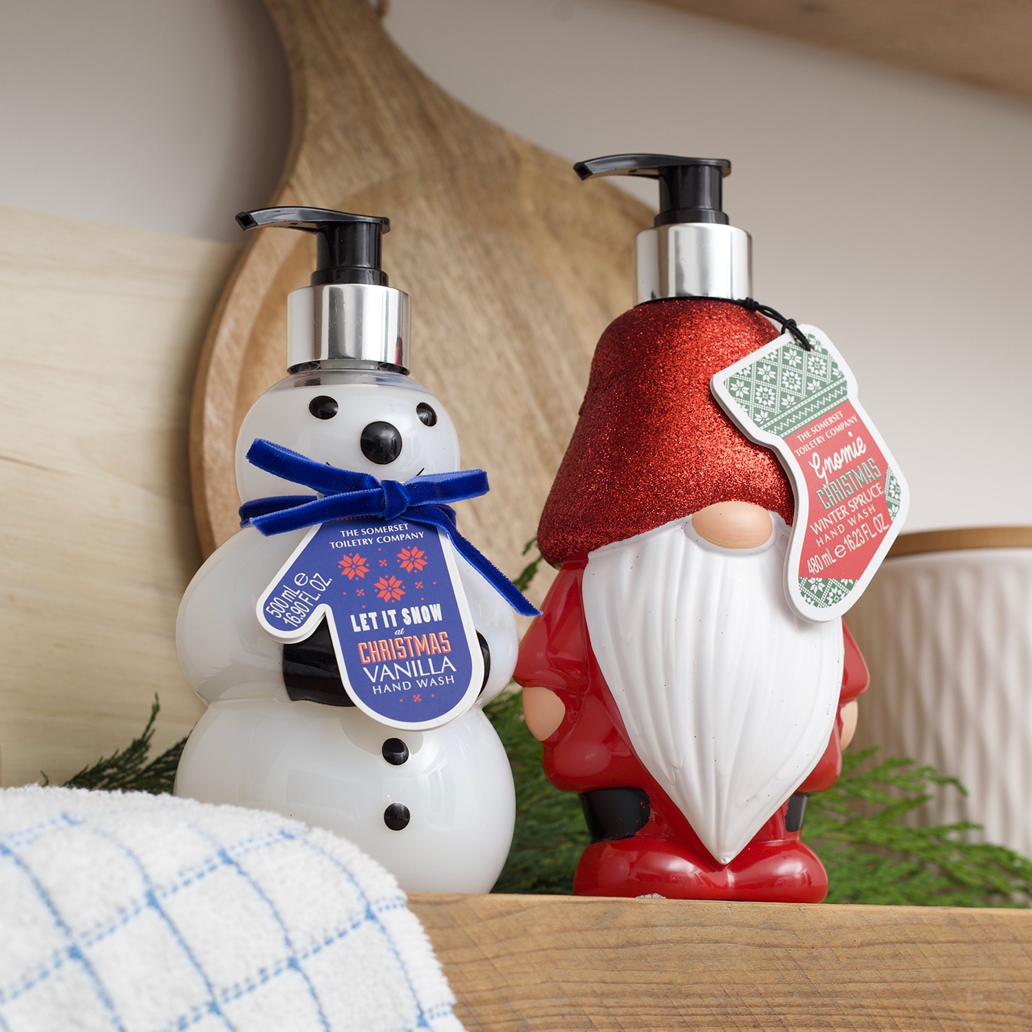 Der kleine Wichtel „Santa Gonk" bringt weihnachtlichen Waschspaß ins Badezimmer. Der Pumpspender enthält nicht nur fein duftende Flüssigseife, die Mütze des Wichtels ist über und über mit rotem Glitzer verziert. Die enthaltene Seife duftet nach frischen Tannen - so als wäre der Weihnachtsbaum gerade eben aufgestellt worden.