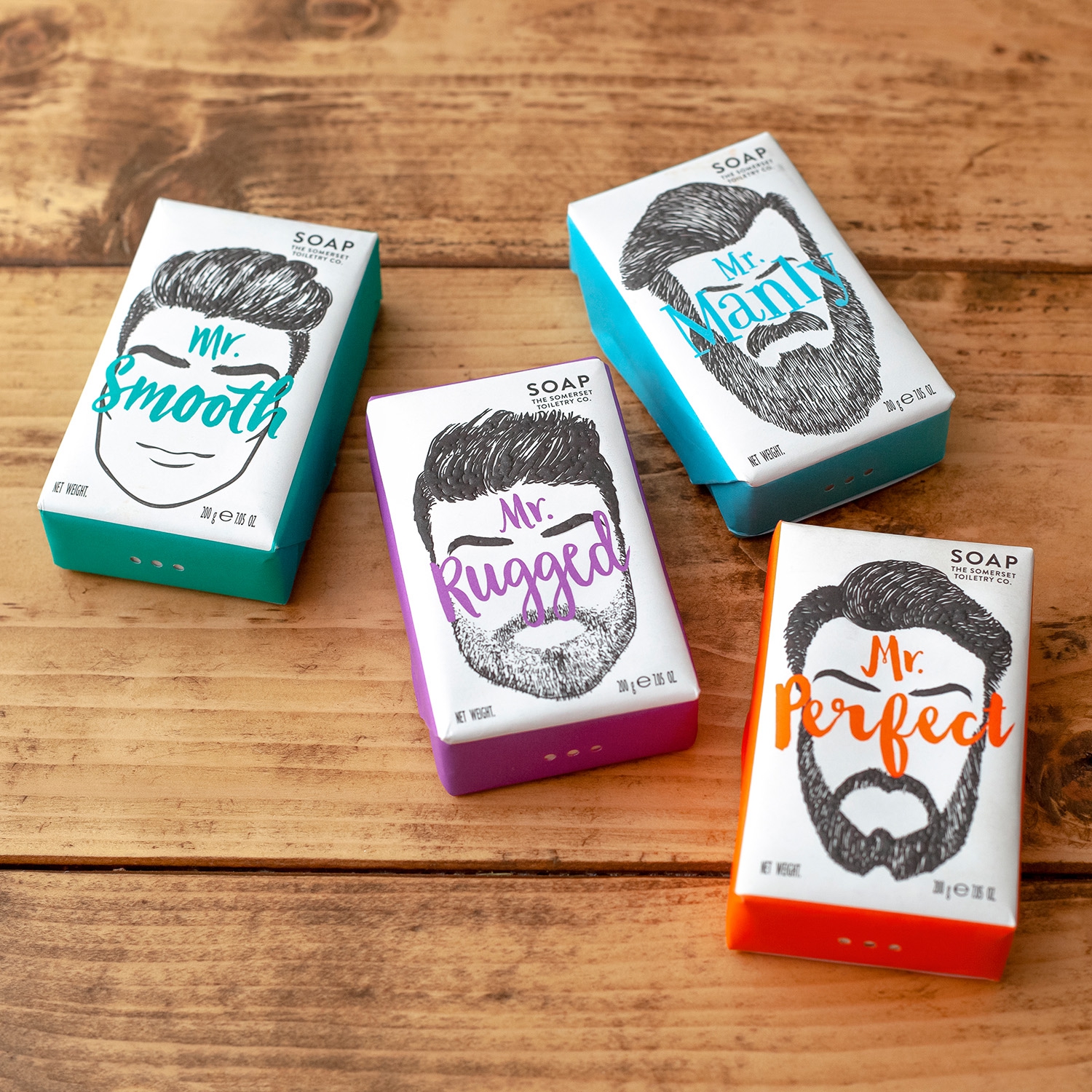 Inhaltsstoffe: Mr. Perfect: Sodium Palmate, Sodium Palm Kernelate, Aqua (Water), Glycerin, Parfum (Fragrance), Sodium Citrate, Tetrasodium Glutamate Diacetate, Citric Acid, Sodium Chloride, Coumarin, Hexyl Cinnamal, Geraniol, Limonene, Linalool. Mr. Manly: Sodium Palmate, Sodium Palm Kernelate, Aqua (Water), Glycerin, Parfum (Fragrance), Sodium Citrate, Tetrasodium Glutamate Diacetate Citric Acid, Sodium Chloride, Linalool, Citral, Citronellol, Benzyl Benzoate, Limonene, Geraniol, Eugenol. Mr. Smooth: Sodium Palmate, Sodium Palm Kernelate, Aqua (Water), Glycerin, Parfum (Fragrance), Sodium Citrate, Tetrasodium Glutamate Diacetate Citric Acid, Sodium Chloride, Limonene, Hexyl Cinnamal, Linalool, Citral, Geraniol, Eugenol. Mr. Rugged: Sodium Palmate, Sodium Palm Kernelate, Aqua (Water), Glycerin, Parfum (Fragrance), Sodium Citrate, Tetrasodium Glutamate Diacetate, Citric Acid, Sodium Chloride, Linalool, Citral, Citronellol, Benzyl Benzoate, Limonene, Geraniol, Eugenol.