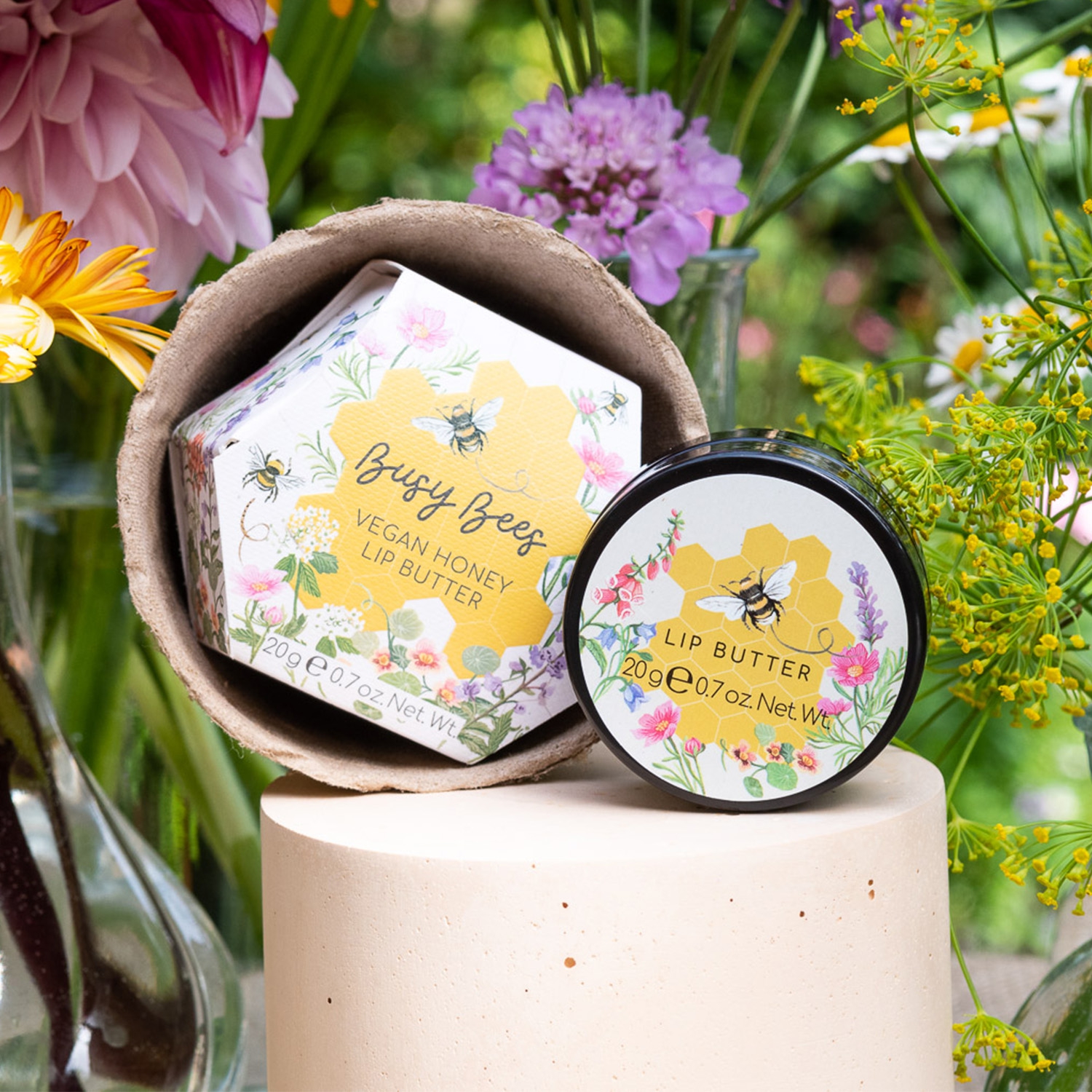 Die vegane Lip Butter ist in einer kleinen Geschenkbox verpackt. Enthalten sind 20 g der pflegenden Lippenbutter. Diese pflegt raue und rissige Lippen wieder geschmeidig zart. Manuka-Blätter-Extrakt schützt dabei die Hautbarriere und Bienenbalsam-Blütenextrakt spendet nachhaltig Feuchtigkeit.