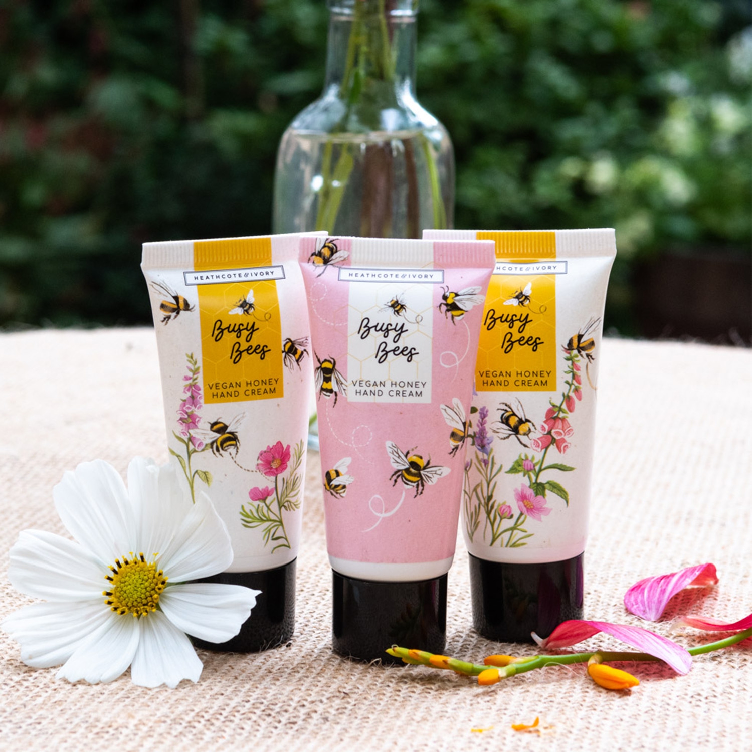 Busy Bees ist die vegane Pflegelinie mit „Honig - ohne Honig". Denn der Honigduft stammt in diesem Fall von den enthaltenen Manuka-Honig-Blättern.