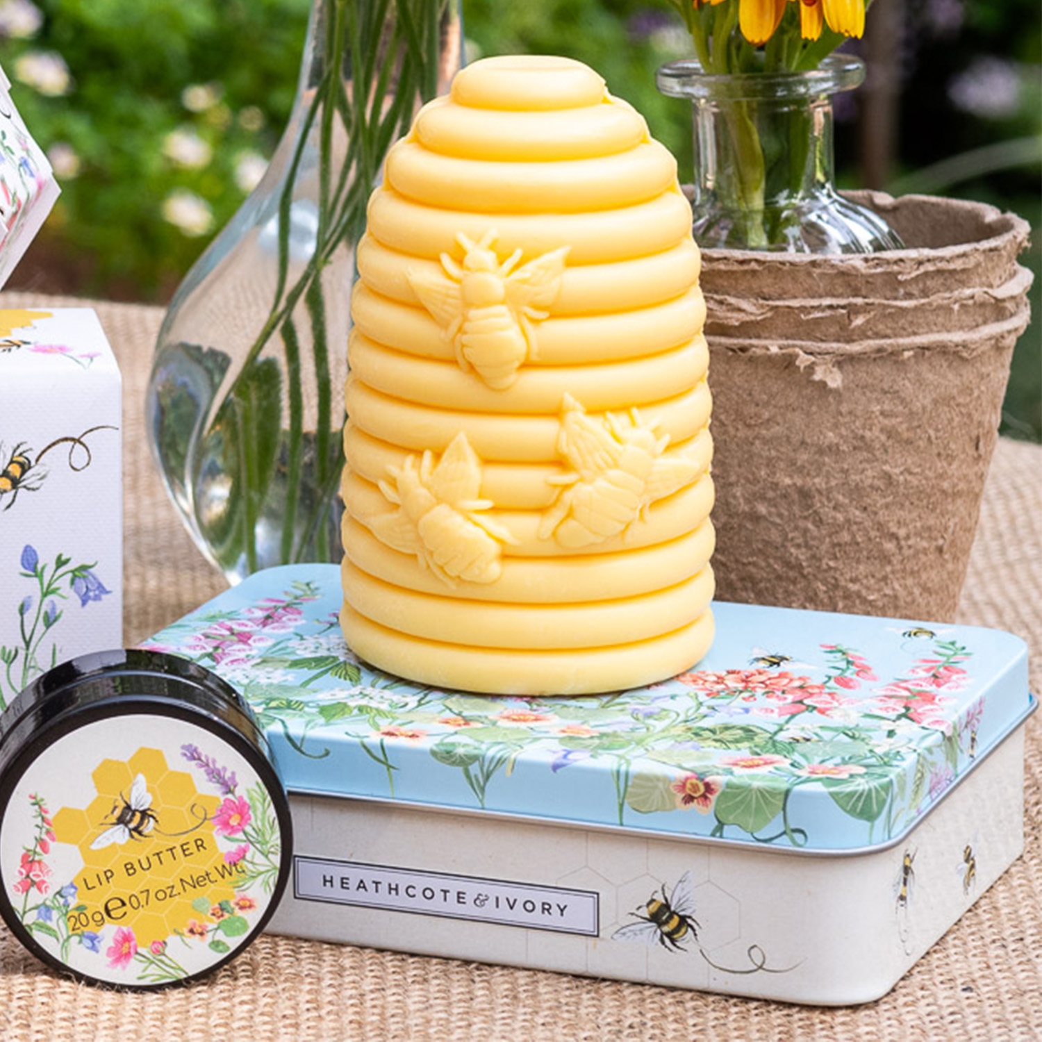 Ein kompletter Bienenstock in Form einer Seife! Das großzügig bemessene Seifenstück kommt mit ganzen 280 g und ist in einer sechseckigen Box verpackt. Kleine „Seifen-Bienen" zieren die Seiten der Seife.